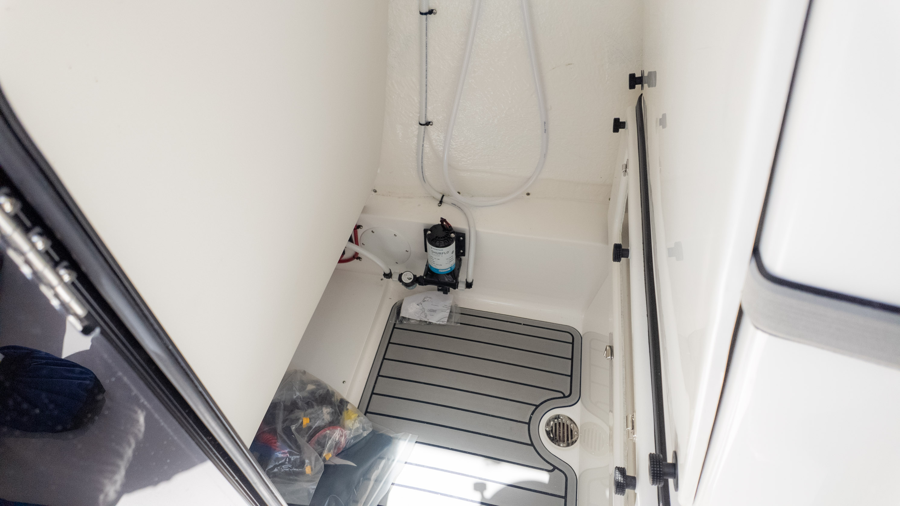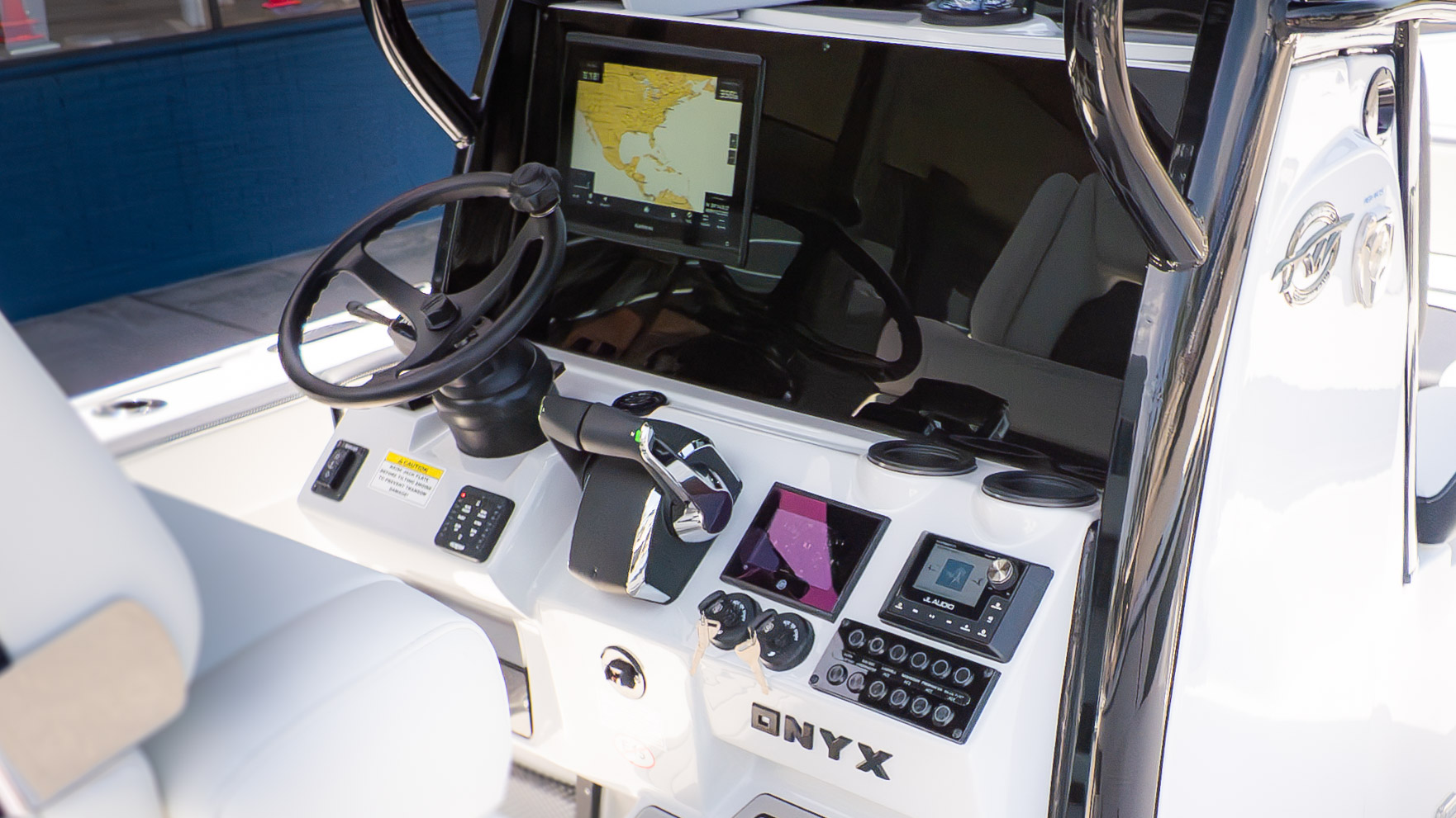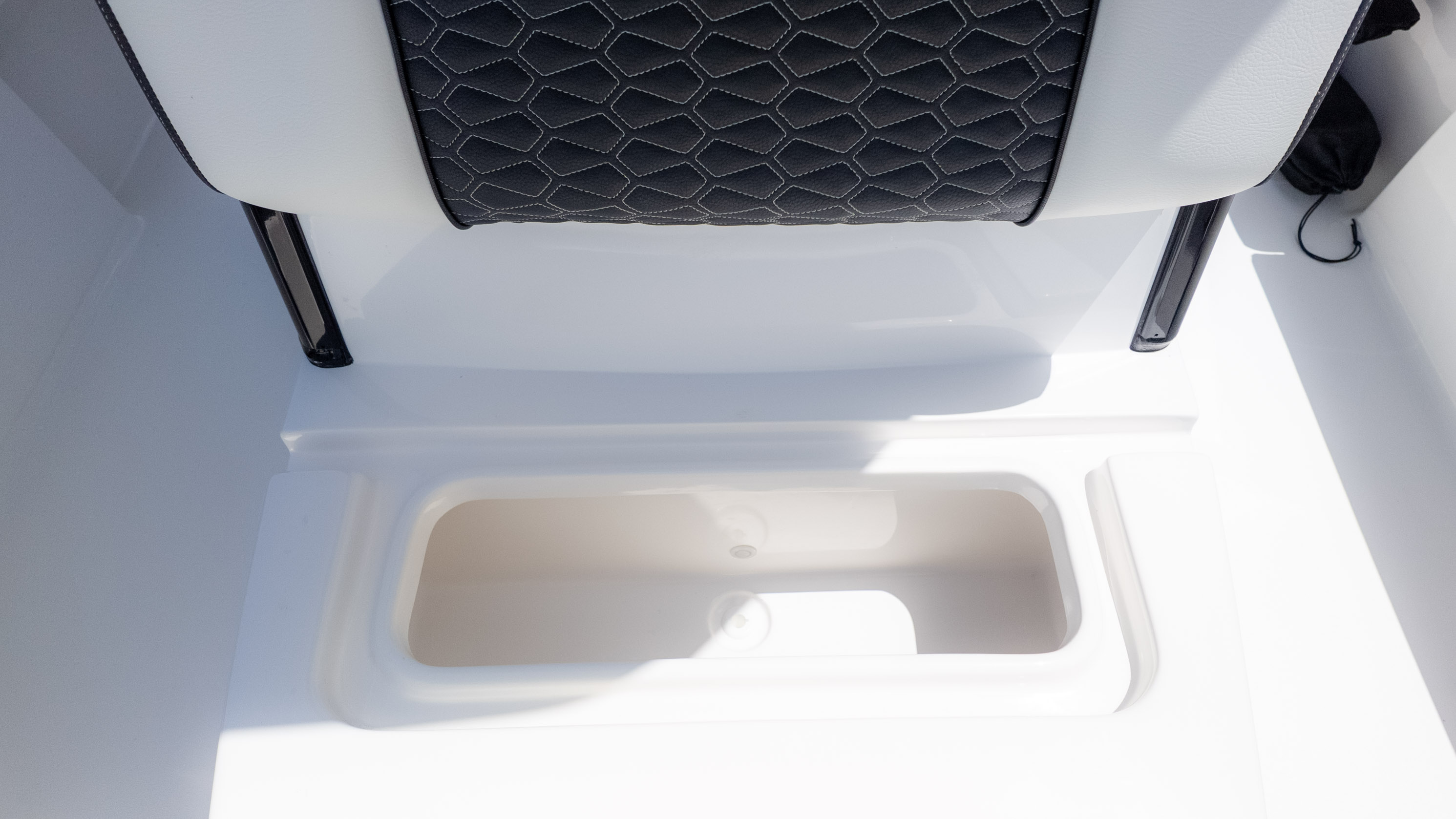 But it's not all about the catch! The 2700 CB also boasts amenities for ultimate comfort and good times. Picture lounging on the recessed bow seating with cushions and backrests or enjoying the stern flip-up bench and jump seats – perfect for socializing with friends and family. The fiberglass T-Top with a glass enclosure and a hardtop in black and white provides excellent shade and style. For the audiophiles, the JL Audio system with multiple speakers and an 8-channel amp promises a premium sound experience. Plus, with a freshwater shower and dual swim platforms with ladders, you can easily cool off and get back on board for more fun in the sun. This boat is truly built for making memories on the water, whether you're reeling in a trophy or simply enjoying the cruise with the power of the Verado.