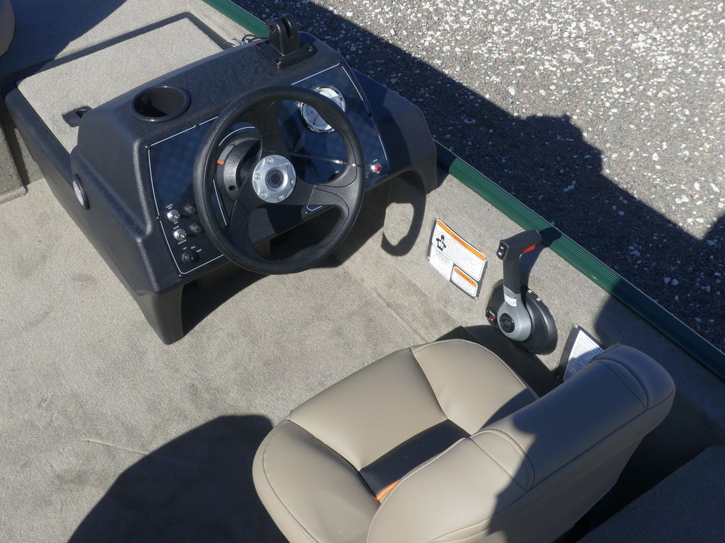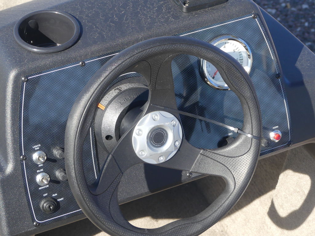 - 1-piece rotomolded console w/tinted windscreen, integrated livewell, drink holder & 12V outlet
