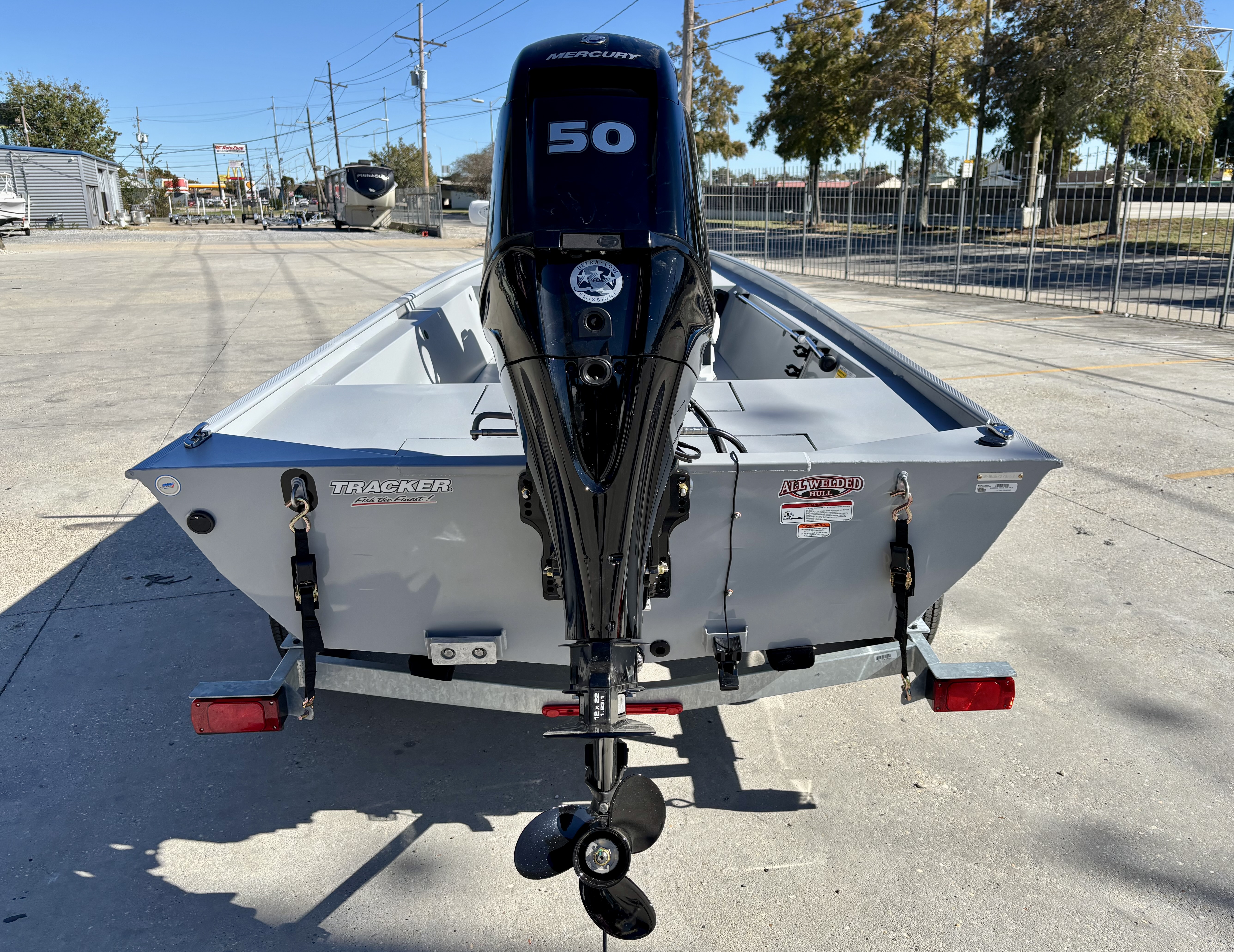 The one-piece rotomolded console includes a tinted windscreen, drink holder, and 12V outlet, while the forward console seat offers padded comfort and storage. Five rod holders and a Garmin® STRIKER™ 4 fishfinder with GPS and CHIRP transducer enhance your fishing experience. Inside, there are two pedestal seat bases, elevated bow and aft casting decks with storage, a 94-qt. bow storage tub, and a padded 50-qt. cooler. Built with durable DIAMOND COAT™ powdercoat and all-welded aluminum construction, this boat offers unmatched strength and longevity. A custom-fit single-axle trailer completes this rugged, high-performance package.