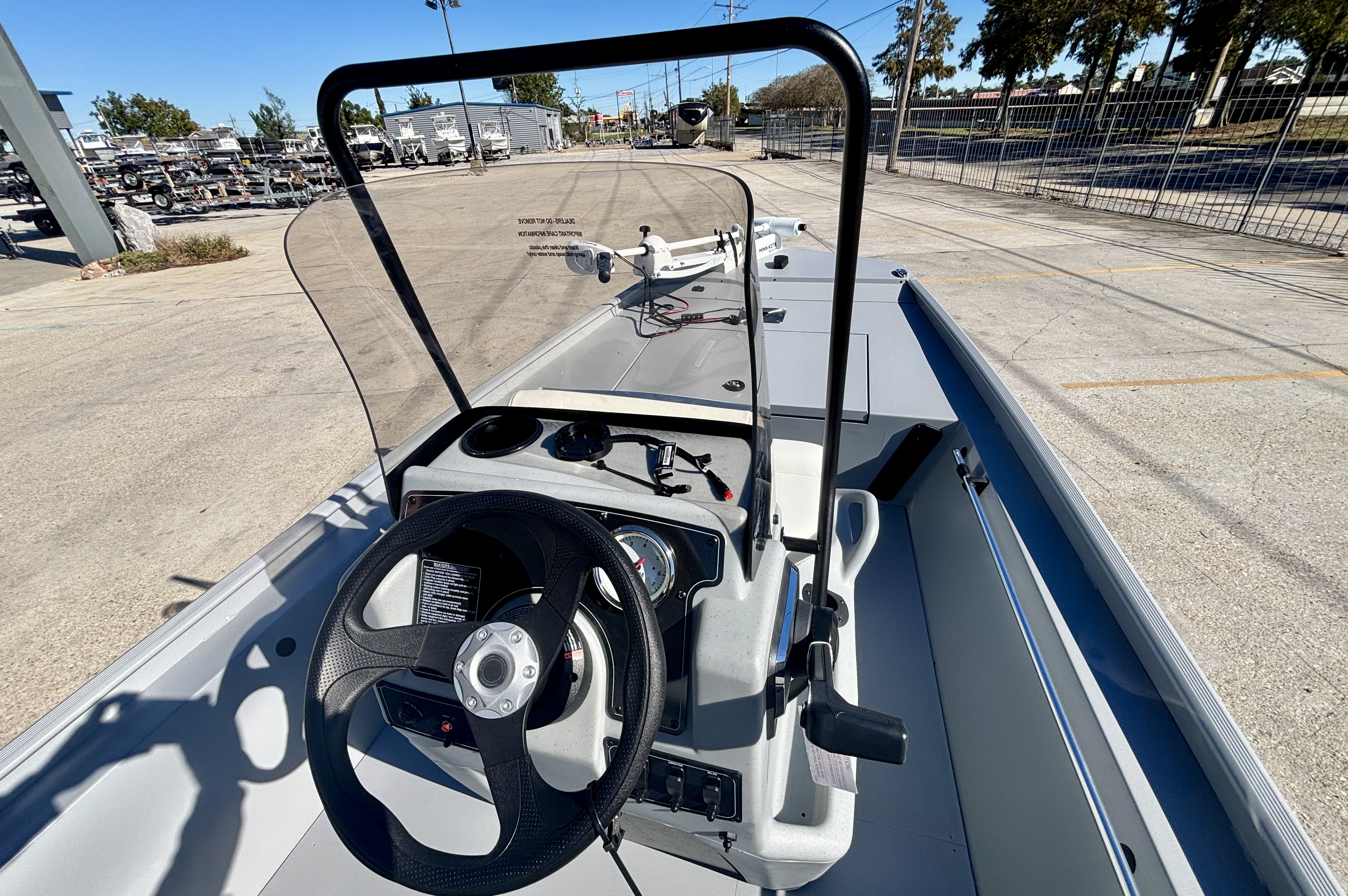 The one-piece rotomolded console includes a tinted windscreen, drink holder, and 12V outlet, while the forward console seat offers padded comfort and storage. Five rod holders and a Garmin® STRIKER™ 4 fishfinder with GPS and CHIRP transducer enhance your fishing experience. Inside, there are two pedestal seat bases, elevated bow and aft casting decks with storage, a 94-qt. bow storage tub, and a padded 50-qt. cooler. Built with durable DIAMOND COAT™ powdercoat and all-welded aluminum construction, this boat offers unmatched strength and longevity. A custom-fit single-axle trailer completes this rugged, high-performance package.