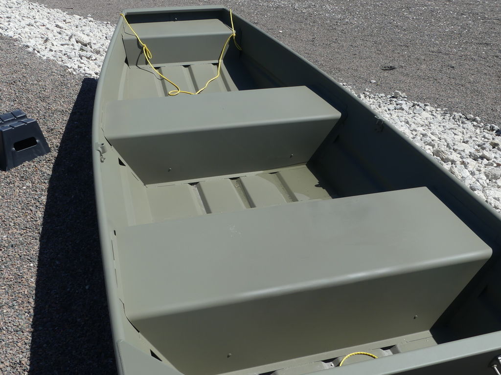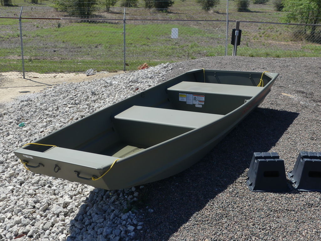 Step aboard the TRACKER GRIZZLY 12 jon boat, with the standout feature of the TRACKER GRIZZLY 12 jon boat lies in its all-welded hull design, setting it apart with unmatched durability and structural integrity. Unlike boats with riveted hulls that may develop leaks or weak points over time, the all-welded construction of the GRIZZLY 12 forms a solid and seamless foundation. This sturdy design not only prolongs the boat's lifespan but also enhances its performance on the water, ensuring a smooth and stable ride across diverse conditions.