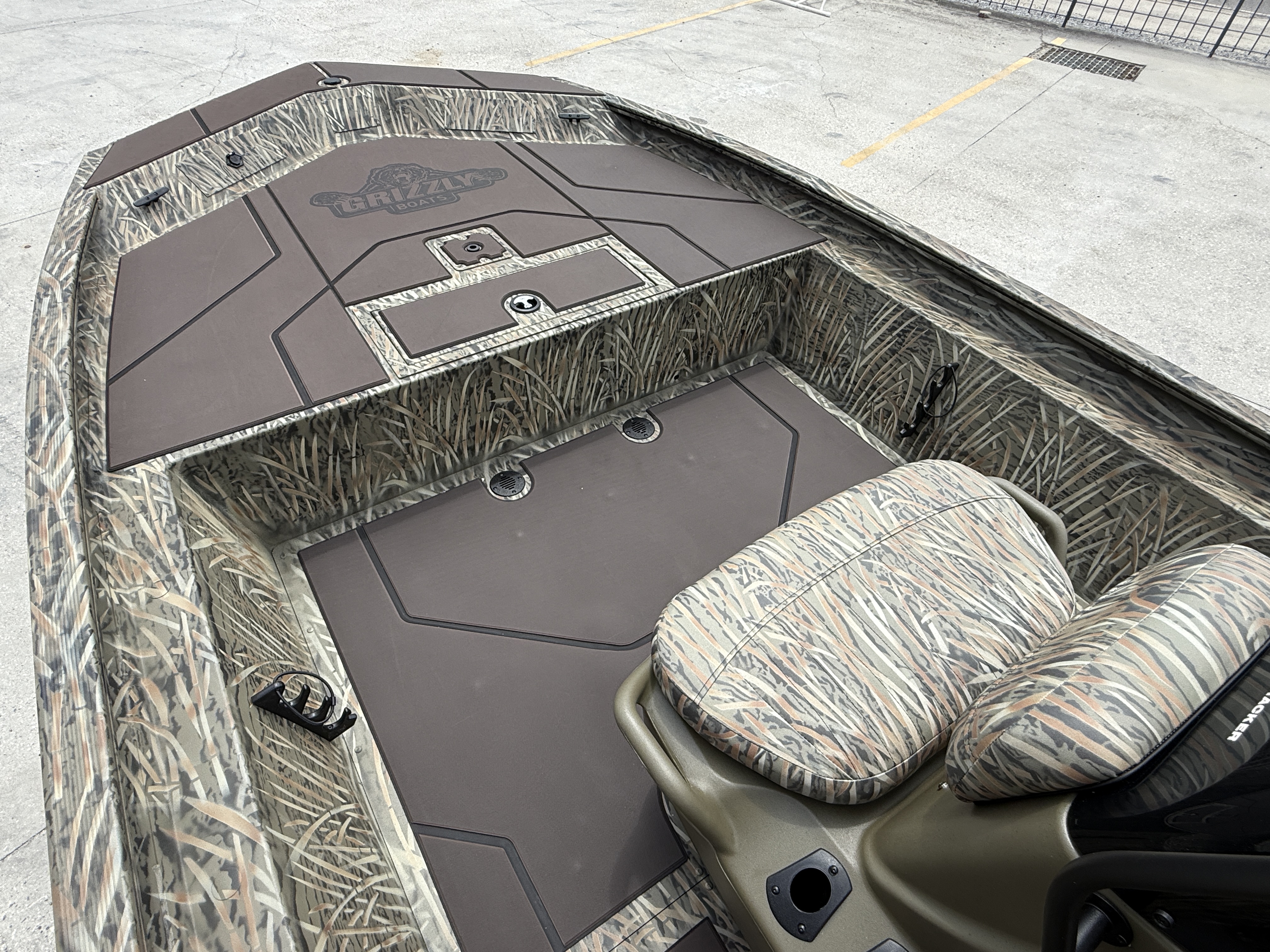 Venture into the unknown with the TRACKER® GRIZZLY® 1860 CC, a robust and versatile all-purpose jon boat designed to conquer various water environments, from rivers to lakes to bays. With its durable, all-welded construction, this boat is equipped to handle any adventure you throw its way. The innovative center-console design not only provides 360° fishability but also offers enhanced visibility for the driver, crucial for navigating through shallow waters cluttered with stumps and rocks. Whether you're casting a line or cruising the waters, the decks and floors of the 1860 CC are equipped with our textured SURE TREAD™ coating, ensuring a secure and non-skid surface for your safety and comfort. The unitized stringer, transom, and Mod V hull construction of this boat guarantee a solid and stable ride, delivering an experience that is both smooth and dry. Finished with our exclusive Forest Green powder-coat finish, the GRIZZLY 1860 CC not only looks sleek but also offers superior protection against corrosion and wear. For those looking to personalize their vessel further, optional TrueTimber patterns and a Marine Mat kit are available, allowing you to tailor your boat to your preferences and style. With the added assurance of the TRACKER PROMISE, featuring the best factory warranty in aluminum boats, the GRIZZLY 1860 CC is a reliable and dependable choice for all your boating adventures.