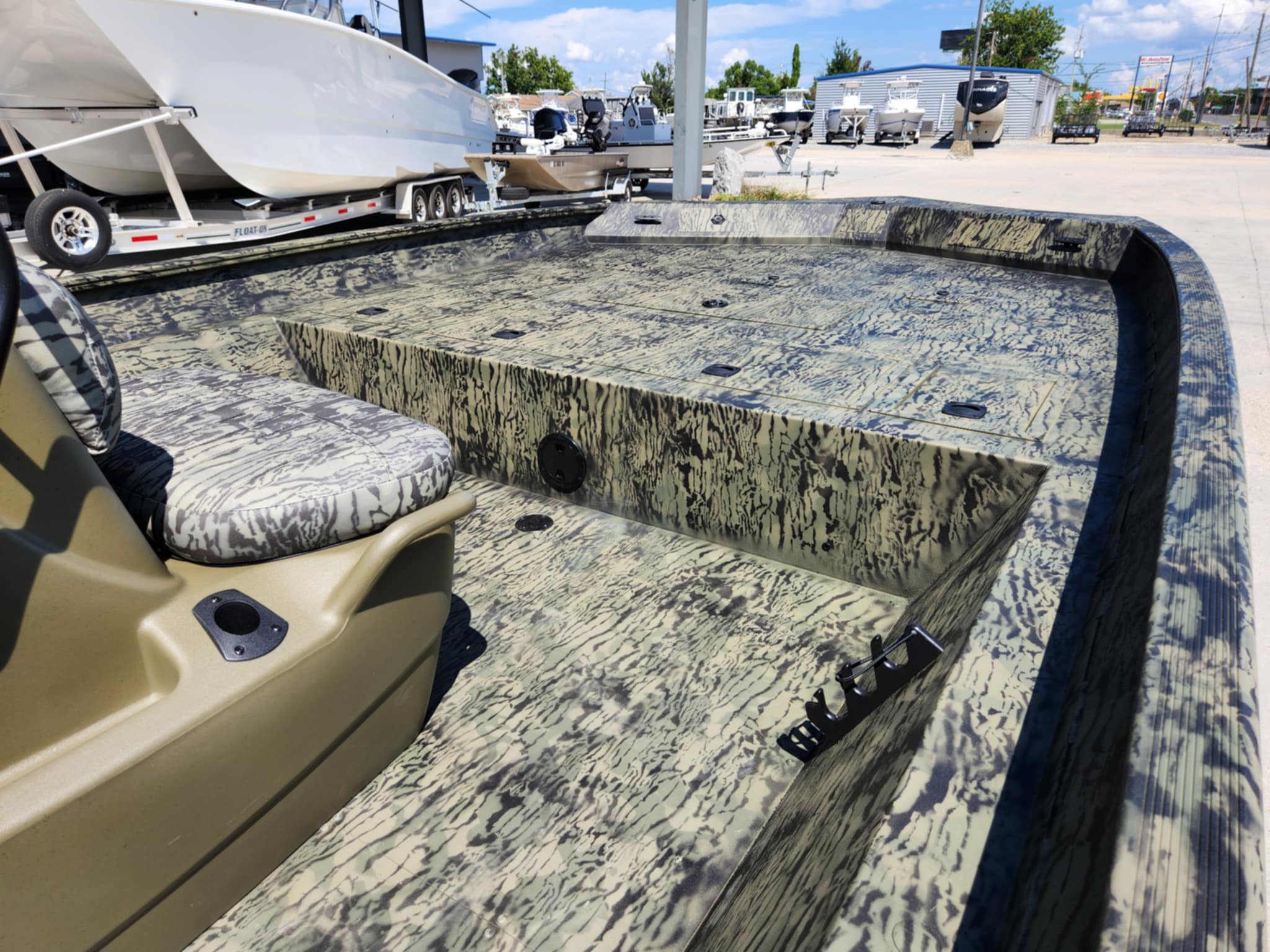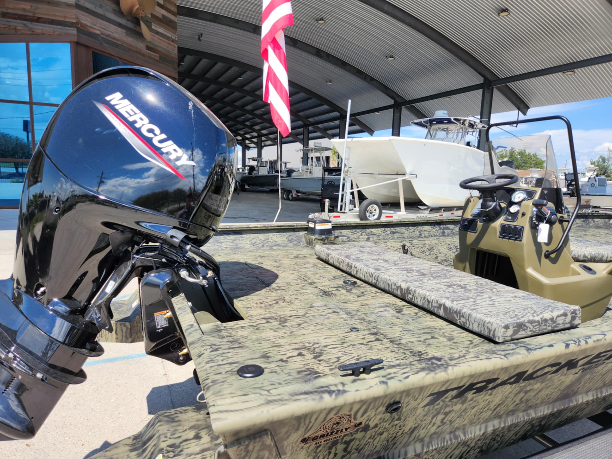 Unleash the power of the TRACKER® GRIZZLY® 2072 CC, a formidable all-welded aluminum jon boat designed to tackle a multitude of tasks, whether it's inland or inshore fishing, hunting, or utility work. Boasting a massive build, this boat is ready to conquer any challenge you throw its way. The innovative center-console design not only offers 360° fishability but also provides the driver with enhanced visibility when navigating through narrow and shallow waters, ensuring a smooth and controlled ride. With the capability to be powered by up to 150 HP, the GRIZZLY 2072 CC delivers unmatched power and range for your adventures on the water. Constructed with 100% aluminum, featuring a .100 hull and .190 floor, this boat guarantees exceptional durability and longevity. The hull, stringer, transom, and decks are meticulously all-welded to create a rock-solid, unitized structure that can withstand the harshest conditions with ease. Backed by the reliable TRACKER PROMISE, offering the best factory warranty in aluminum boats, the GRIZZLY 2072 CC provides you with peace of mind and confidence in your investment. For those looking to personalize their vessel, optional TrueTimber camo patterns and a MarineMat kit are available, allowing you to tailor your boat to suit your preferences and style. Experience unparalleled versatility, power, and durability with the TRACKER GRIZZLY 2072 CC, your ultimate companion for a wide range of water activities.
