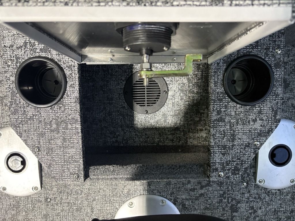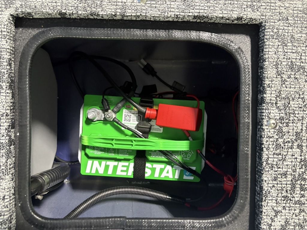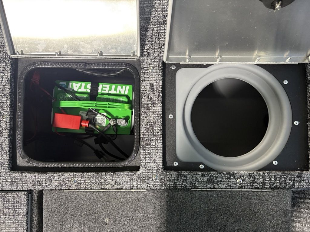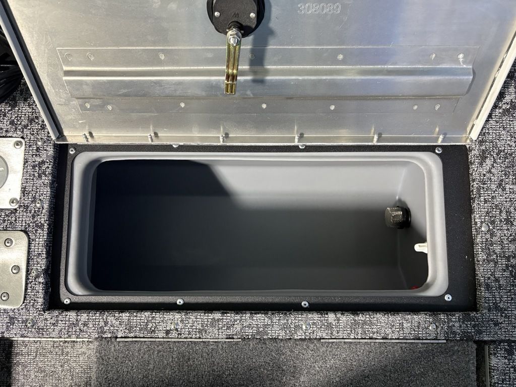 - Aft 29-gal. (109.78 L), 50" (1.27 m) aerated livewell w/removable bait bucket, timer, recirculator & pump-out system