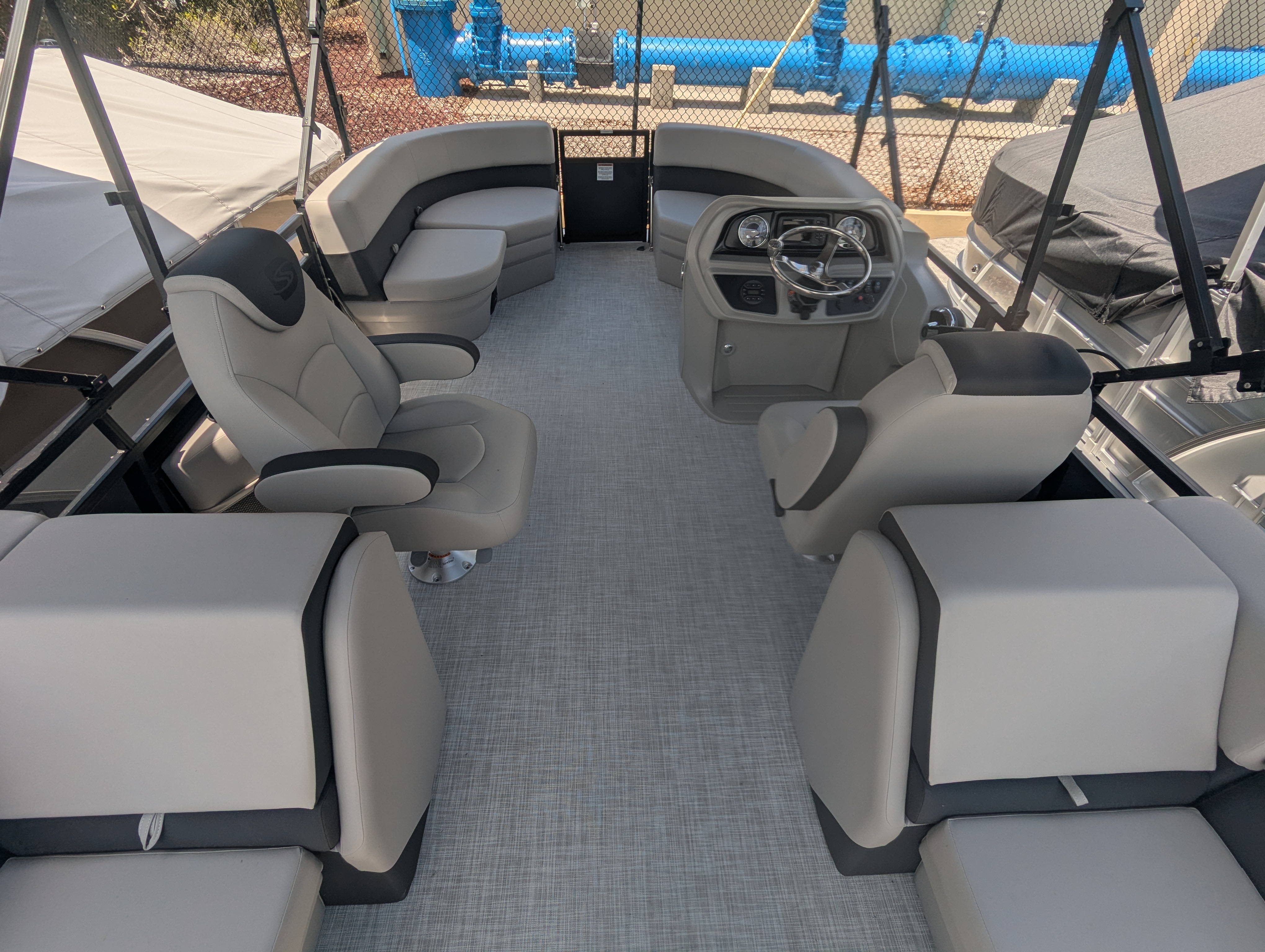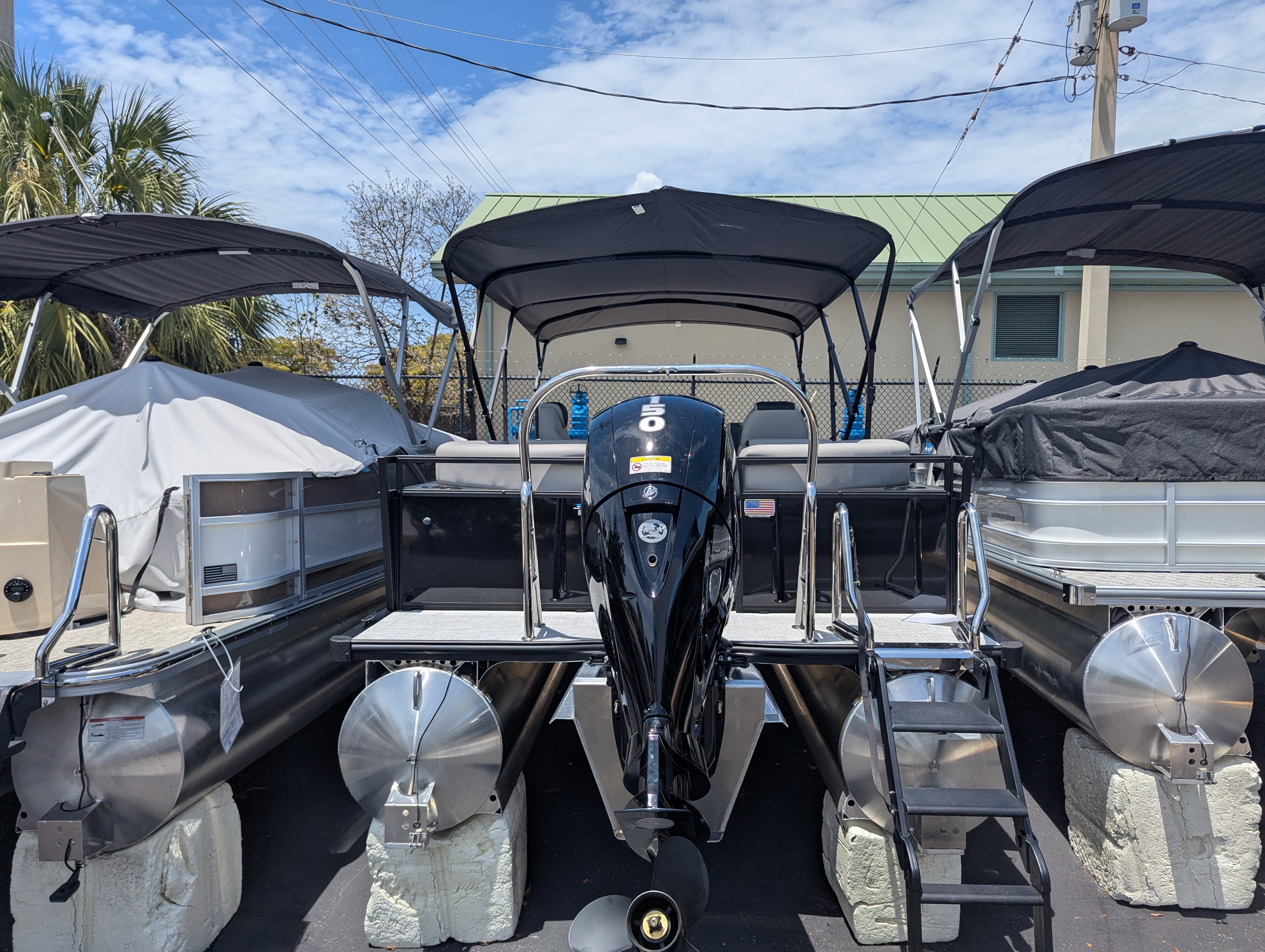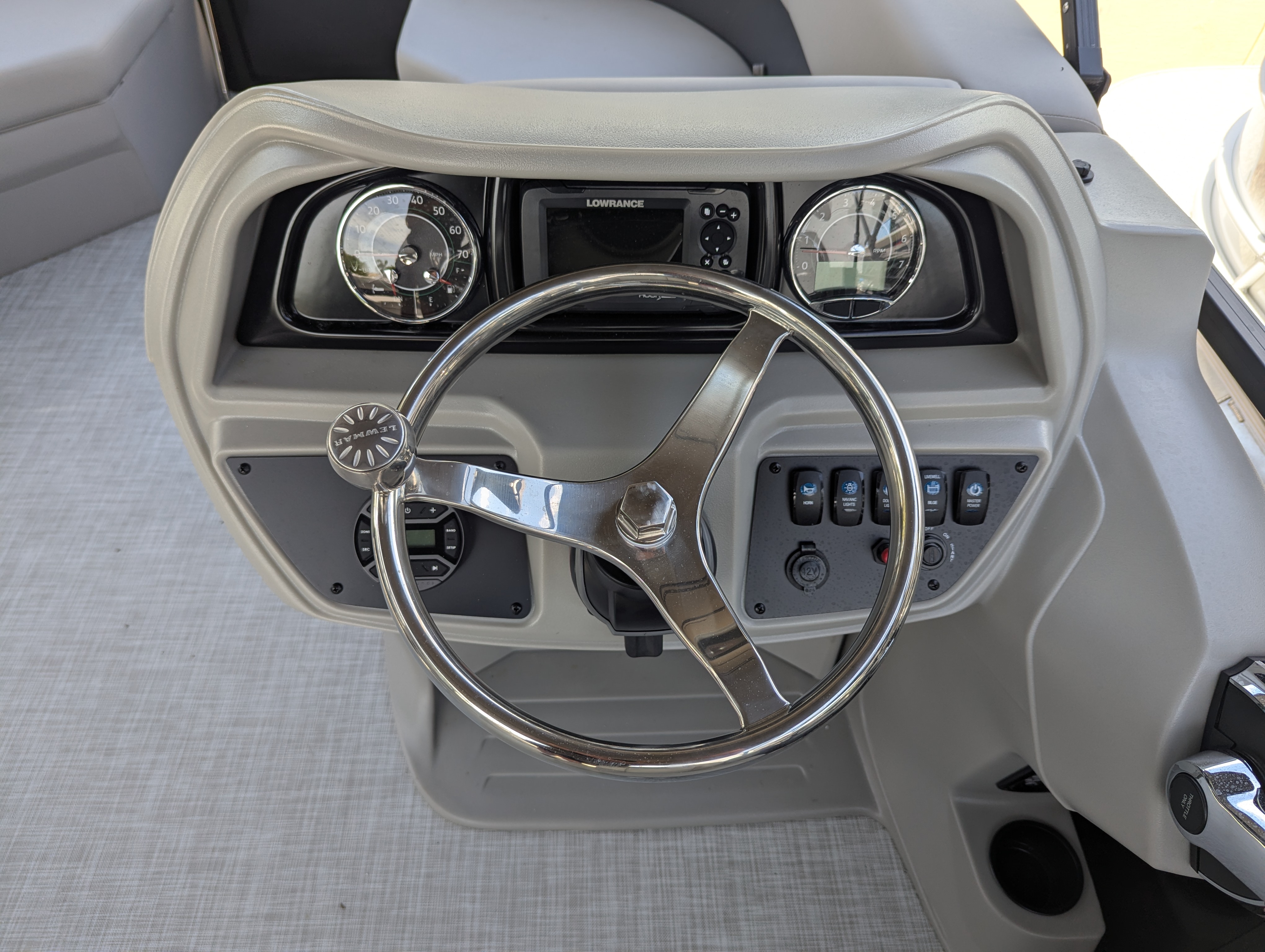 OPTIONS: 2.75 Performance Package, Salt Water Edition, Trim Level:Midnight, Panel 1:Black Onyx, Ski Tow, Furniture Base:Stoneware, Flooring:Shoreline Haze, Canvas Color:Coal, Bimini:Manual Double Bimini, Mercury Mechanical Pre-Rig, Premium Polymer Helm, Lowrance Hook 5 Display, Seastar Hydraulic Steering, Tilt Steering, HD Table and Base, (2) Portable Cupholders, Lippert Ladder, 25" transom, Sprortsman Power Pole