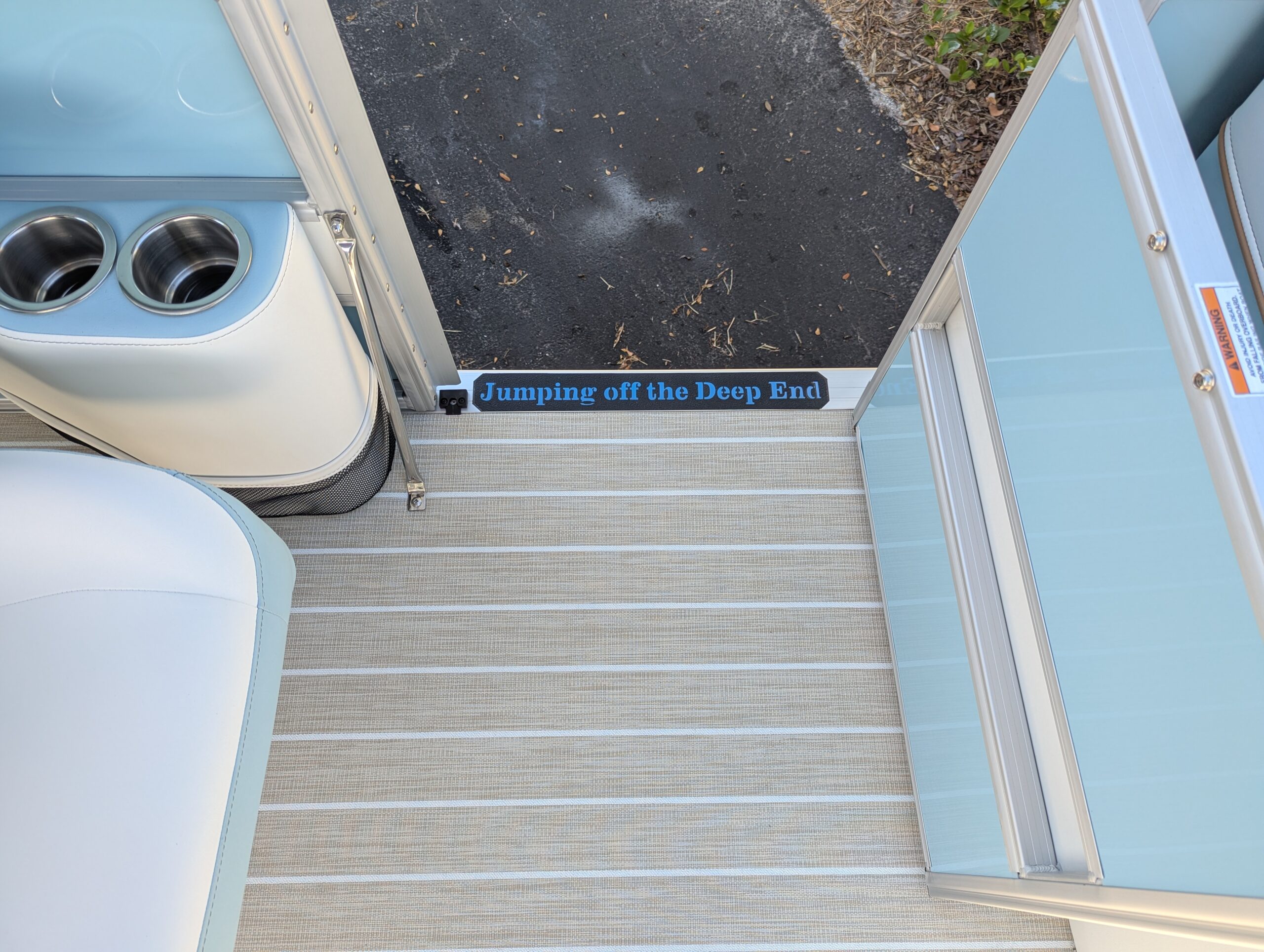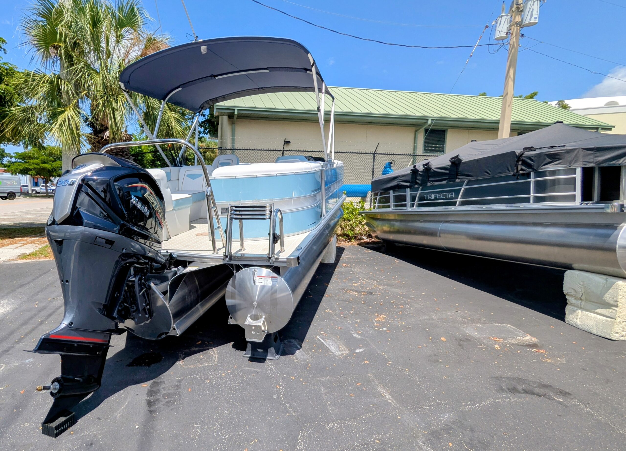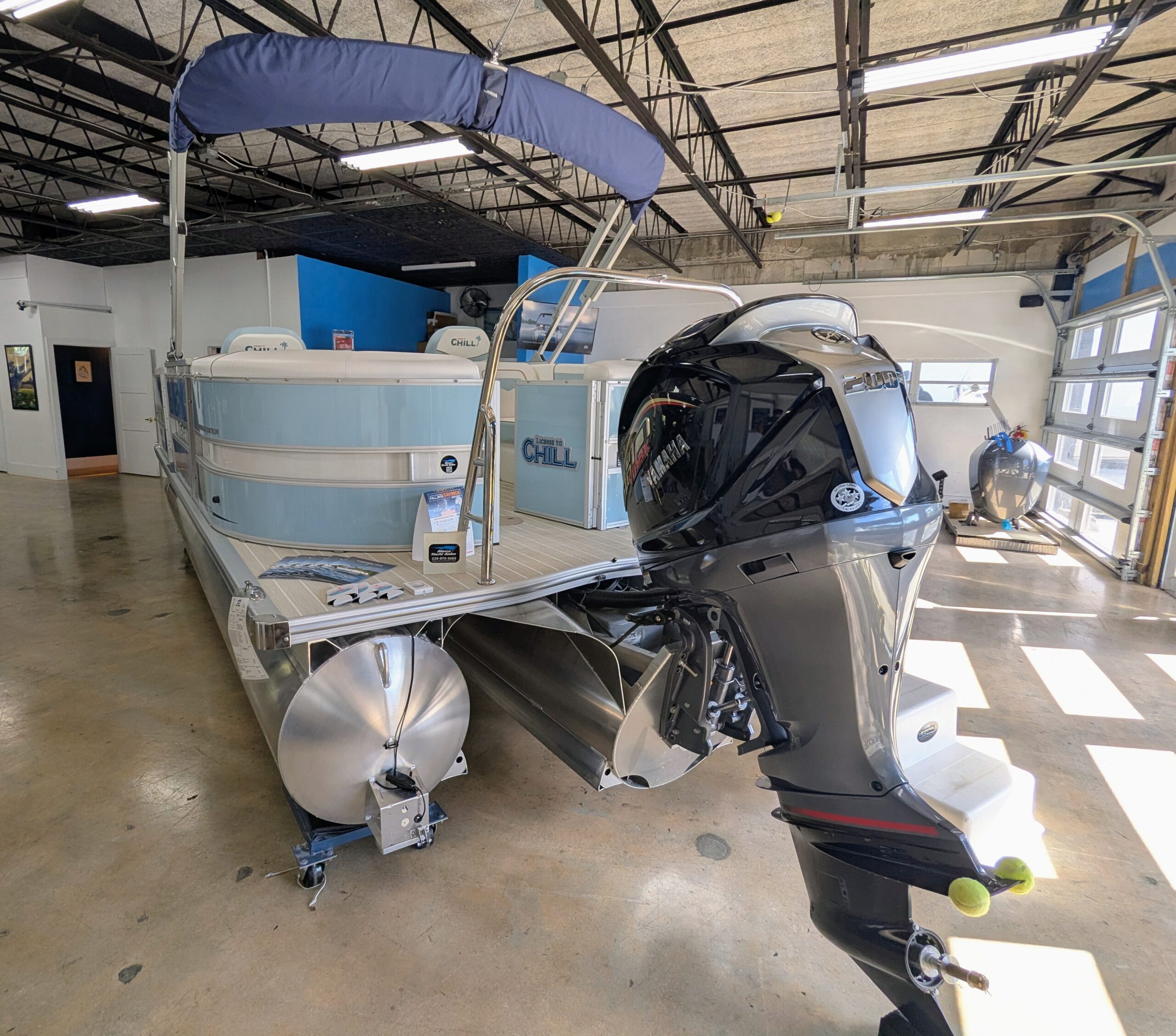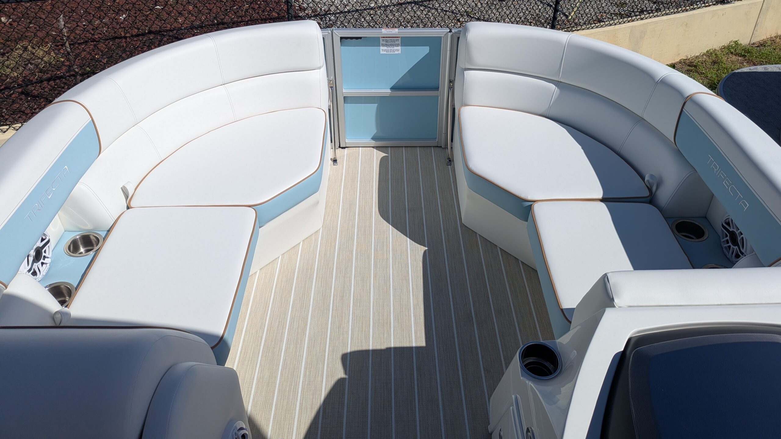 Trifecta LICENSED TO CHILL - CHASSIS/DECK CONSTRUCTION White custom furniture, Special "Licensed to Chill" lighting, Custom Logos, layout and design. Raised exterior panels with Buffett palm logos * MADE IN THE USA *