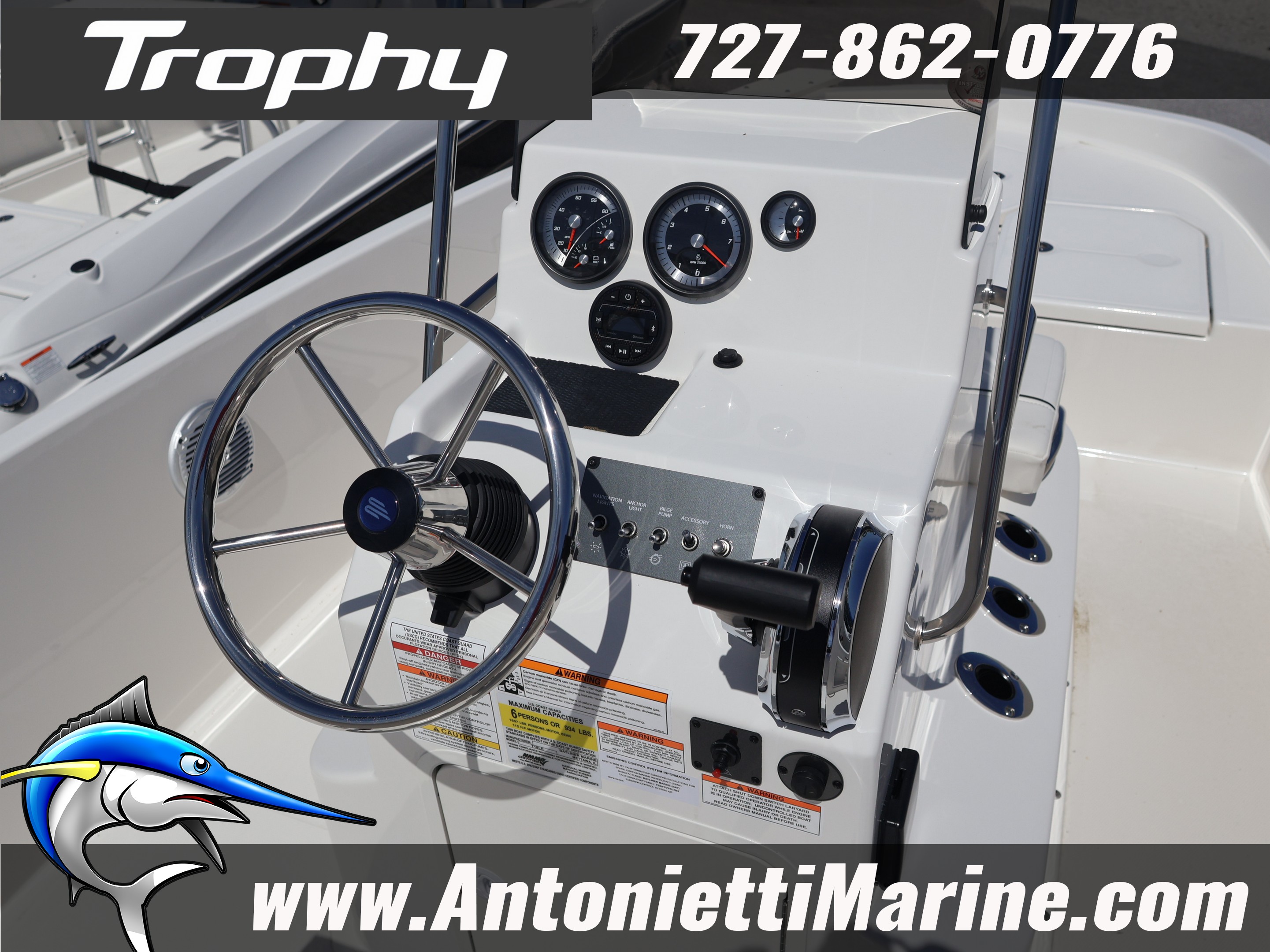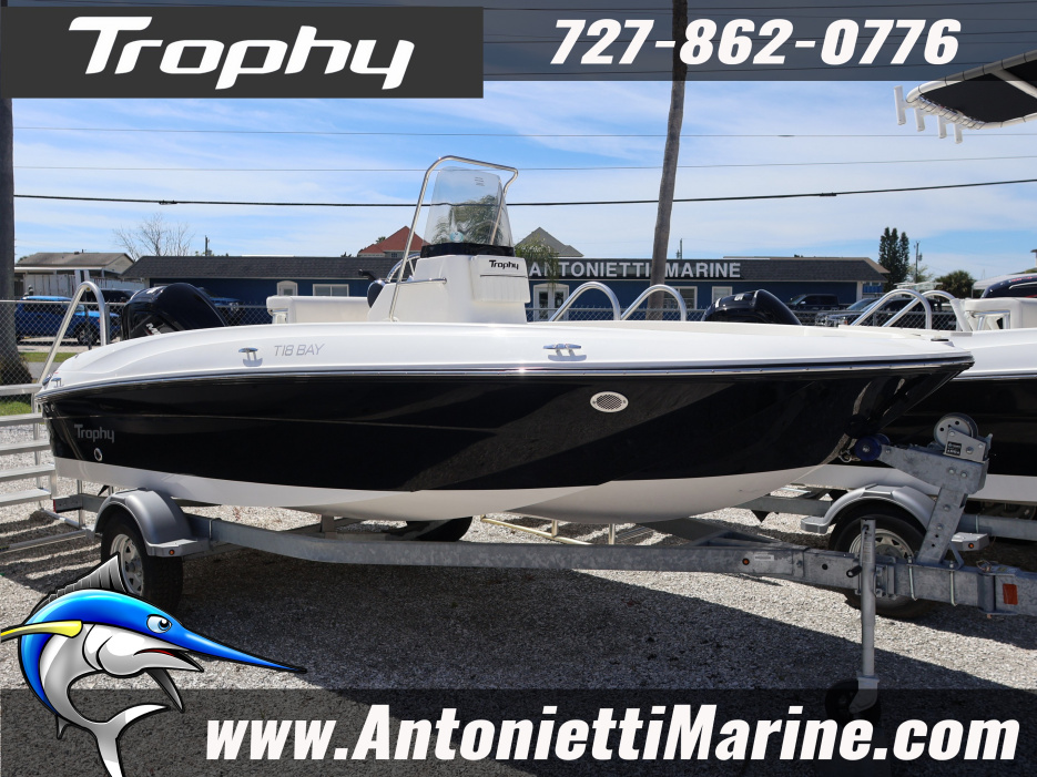 The Trophy T18 center console bay boat blends affordability and fishability in a way you simply can’t ignore. Seasoned fishermen and families alike will appreciate the features and layout.The Bayliner T18's Convenience Package includes waterproof 120-watt AM/FM Stereo with MP3 capability, Forward Livewell, Hydraulic Steering System, Stainless Steel Upgrade and Trolling Motor Bracket