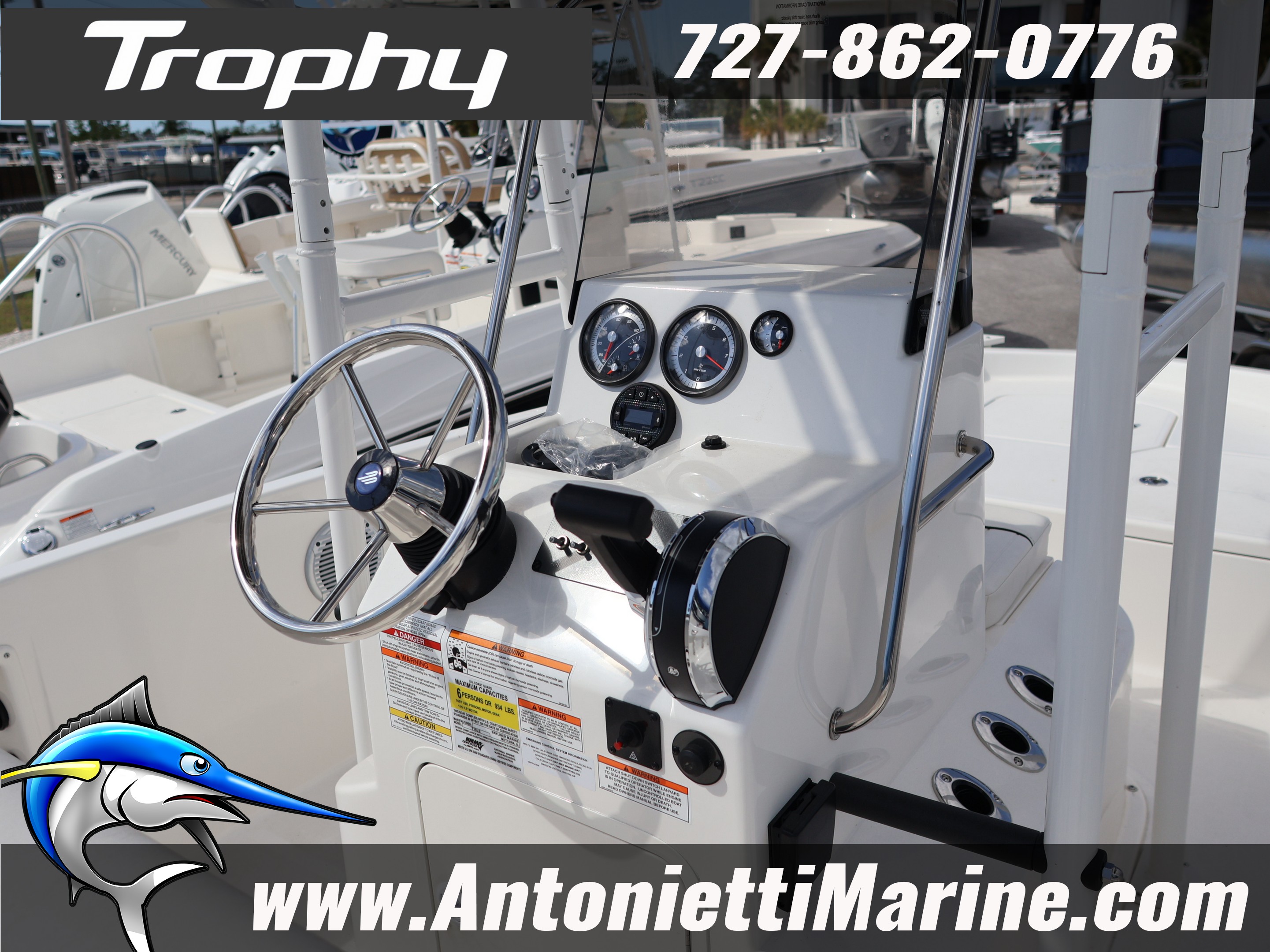 The Trophy T18 center console bay boat blends affordability and fishability in a way you simply can’t ignore. Seasoned fishermen and families alike will appreciate the features and layout.The Bayliner T18's Convenience Package includes waterproof 120-watt AM/FM Stereo with MP3 capability, Forward Livewell, Hydraulic Steering System, Stainless Steel Upgrade and Trolling Motor Bracket