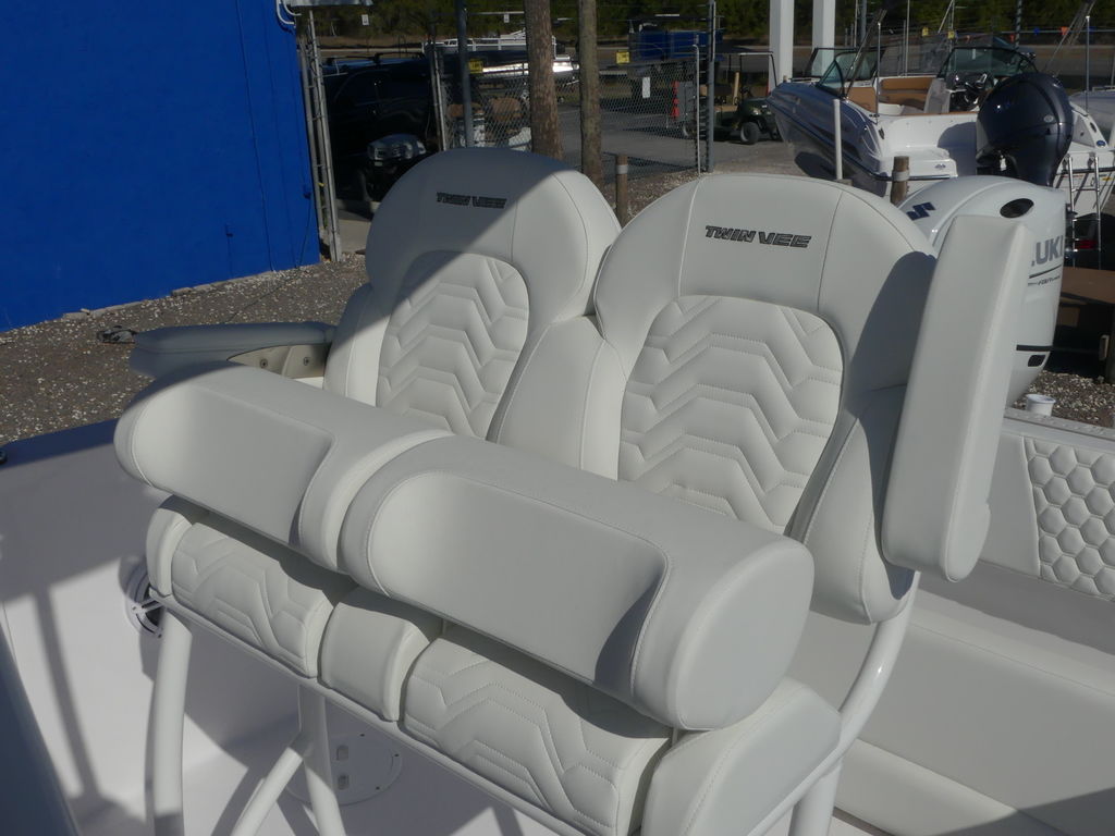 Angler-Focused Amenities: Large insulated fish boxes, a pressurized livewell, and ample rod storage throughout the gunwales and T-top.