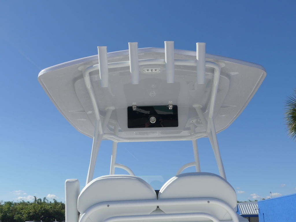 Angler-Focused Amenities: Large insulated fish boxes, a pressurized livewell, and ample rod storage throughout the gunwales and T-top.