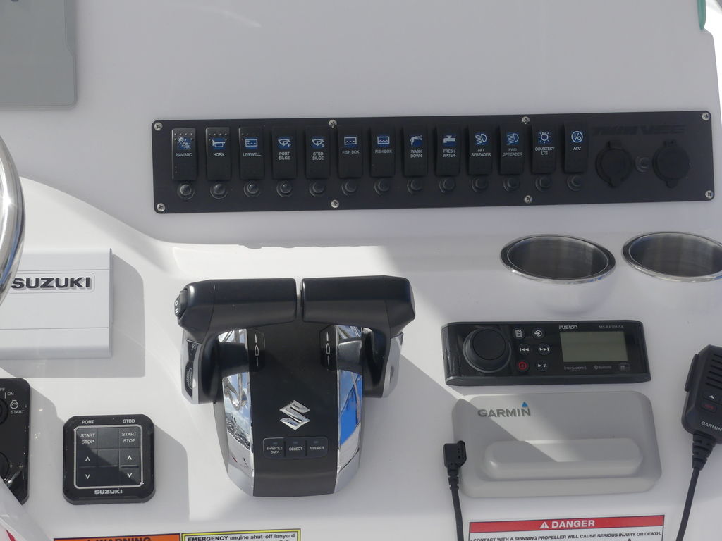 Power: Twin Suzuki 150hp FourStroke Outboards (Digital Controls).