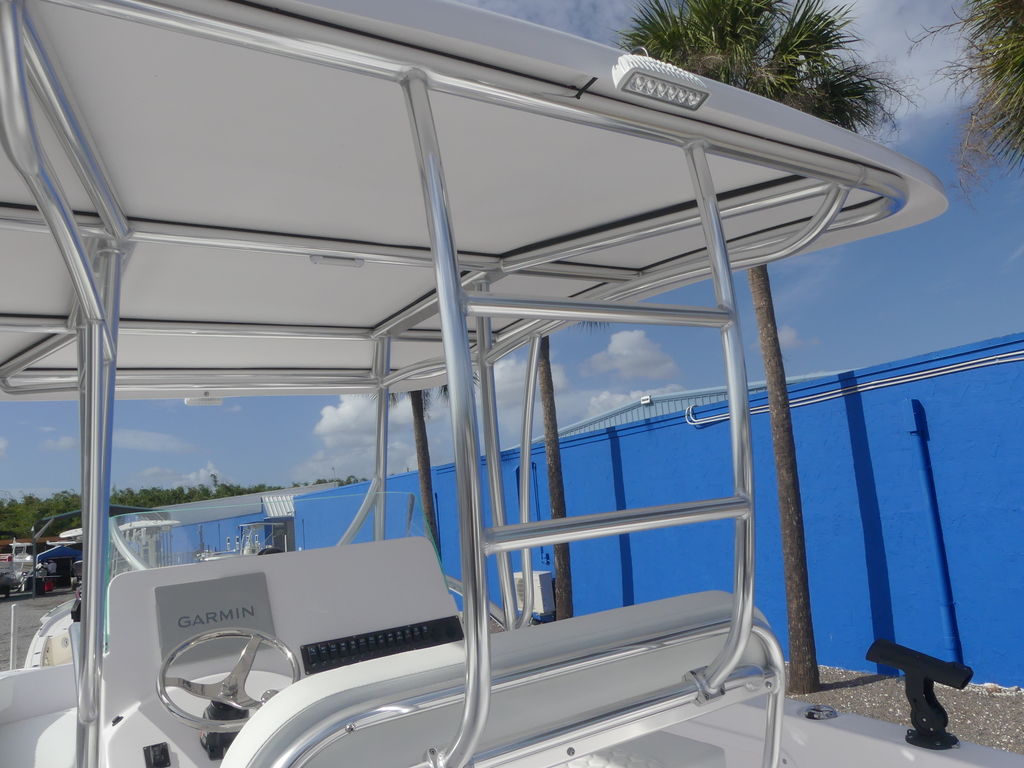 Seating: Deluxe helm bench with flip-up bolsters and comfortable forward console seating for guests.