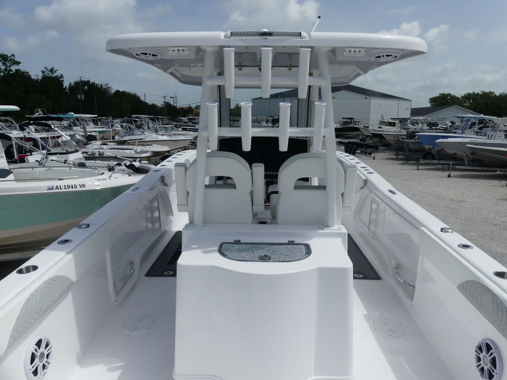 Florida’s saltwater demands a strong, corrosion-resistant build. The hull and deck are vacuum-infused all-composite construction with foam-filled flotation, stainless-steel hardware, and high-density composite transoms to handle big engines and big seas.