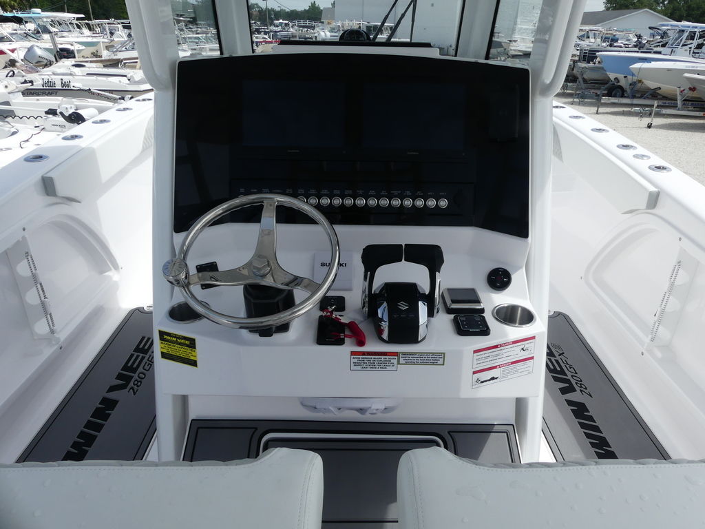 Experience the ultimate offshore ride with the 2026 Twin Vee PowerCats 280 Center Console GFX. Designed and built for Florida’s unique coastal conditions — from the Gulf to the Atlantic side — this catamaran center console boat delivers exceptional stability, superior fuel efficiency and unmatched deck space. Powered by twin Suzuki Marine outboards (600HP total), the hull slices through chop, offering a smooth, confident ride even in the challenging seas off Florida’s coast.