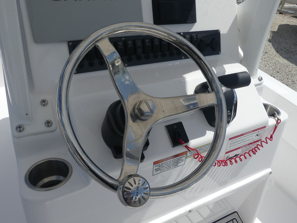 The center console layout provides excellent visibility and control from the helm. With a clean dash designed for modern electronics and navigation systems, the captain can easily monitor conditions and stay on course while exploring Florida’s coastal waters. Comfortable seating ensures that both the captain and passengers enjoy the ride, whether you're making a quick run to the next fishing spot or cruising for the day.