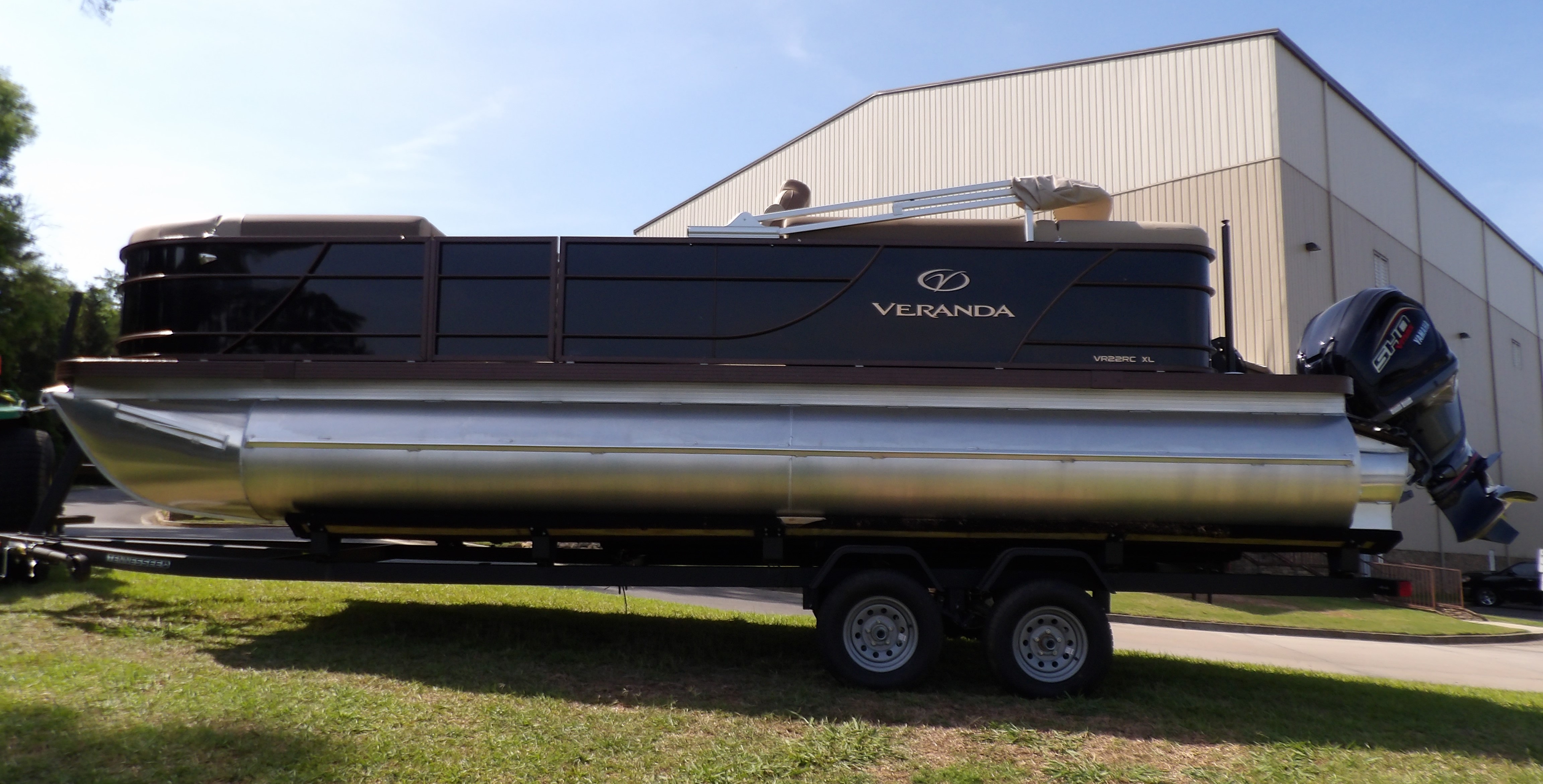New 2026 Veranda 22 footer in Classic Black Panel with Copper Rails & a Blended Latte tan interior. One of our favorites. This Relax series model was recently updated & upgraded! This boat received new interior and exterior touches and a new helm just to name a few. This Veranda VR22RC comes with all the standard features of the Relax series plus these added options: reliable power from a 200 HP Yamaha SHO Four Stroke outboard with stainless prop, 27" triple toons, a power bimini, woven floor upgrade, side keels & easy step ladder. This Veranda performs as good as it looks & it looks like you should check it out before it's gone. This Tritoon can be delivered to your dock on the water or we have a selection of trailers available for purchase. For more details, the latest in pricing and incentives give us a call at Eclipse Marine Seneca (864) 670-2250 or stop in and see us at 305 US Hwy 123 bypass Seneca, SC.