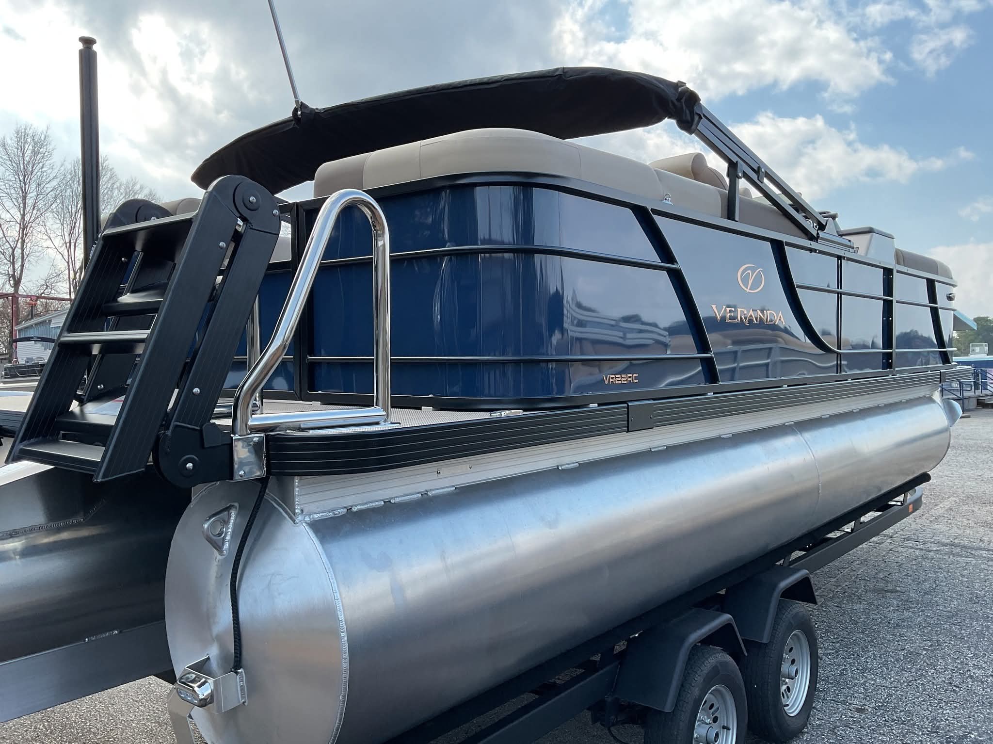 New 2026 Veranda 22 footer in Indigo (Navy) Blue & a Blended Latte tan interior. This Relax series model was recently updated & upgraded! This boat received new interior and exterior touches and a new helm just to name a few. This Veranda VR22RC comes with all the standard features of the Relax series plus these added options: reliable power from a 200 HP Yamaha SHO Four Stroke outboard with stainless prop, 27" triple toons, a power bimini, woven floor upgrade, side keels & easy step ladder. This Relax series Veranda is perfect for family, friends and pets a like. With room for 15, you can bring them all. This Tritoon can be delivered to your dock on the water or we have a selection of trailers available for purchase. For more details, the latest in pricing and incentives give us a call at Eclipse Marine Seneca (864) 670-2250 or stop in and see us at 305 US Hwy 123 bypass Seneca, SC. *All boats are subject to manufacturer freight, prep, doc, state/ local taxes. Prices subject to change without notice.