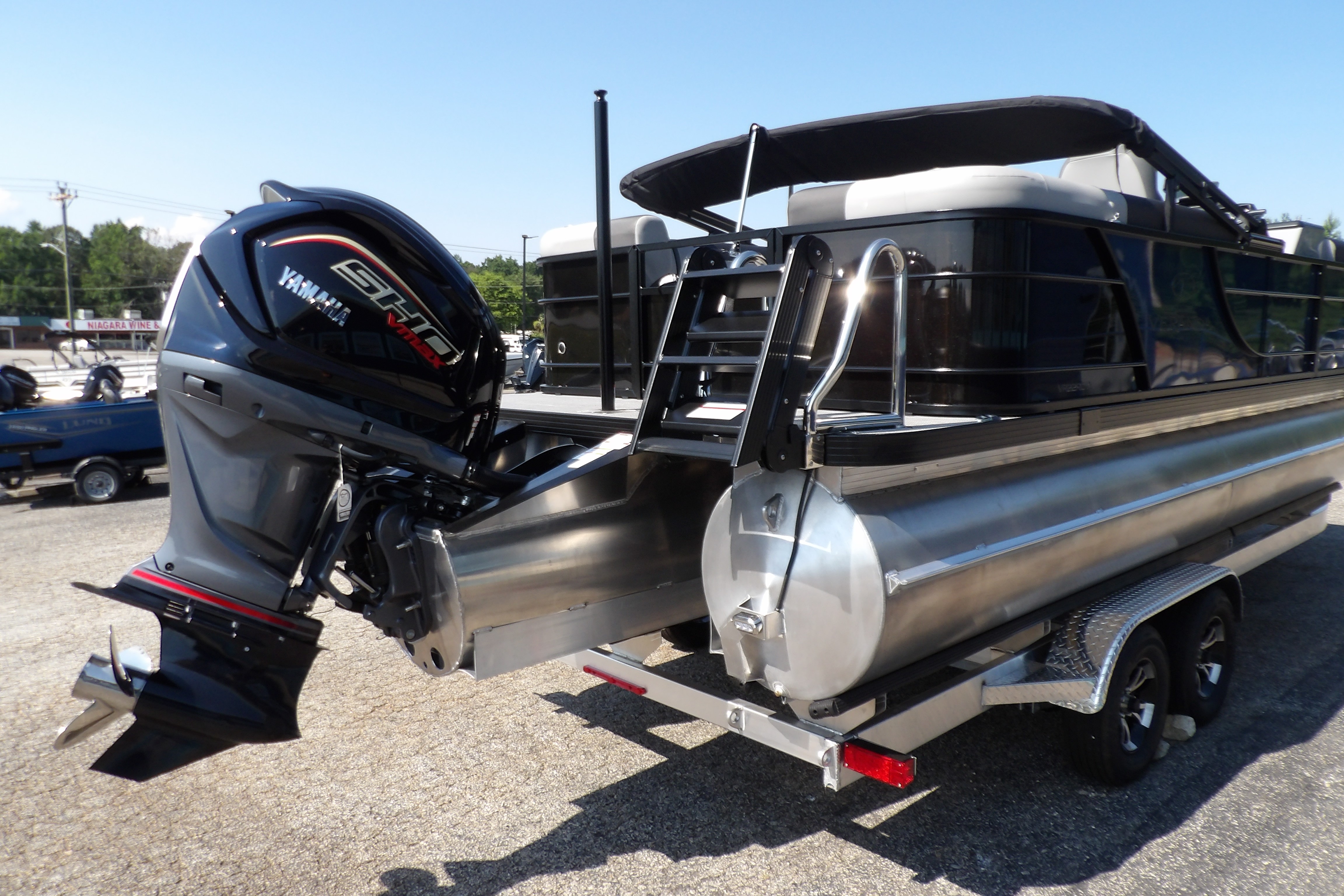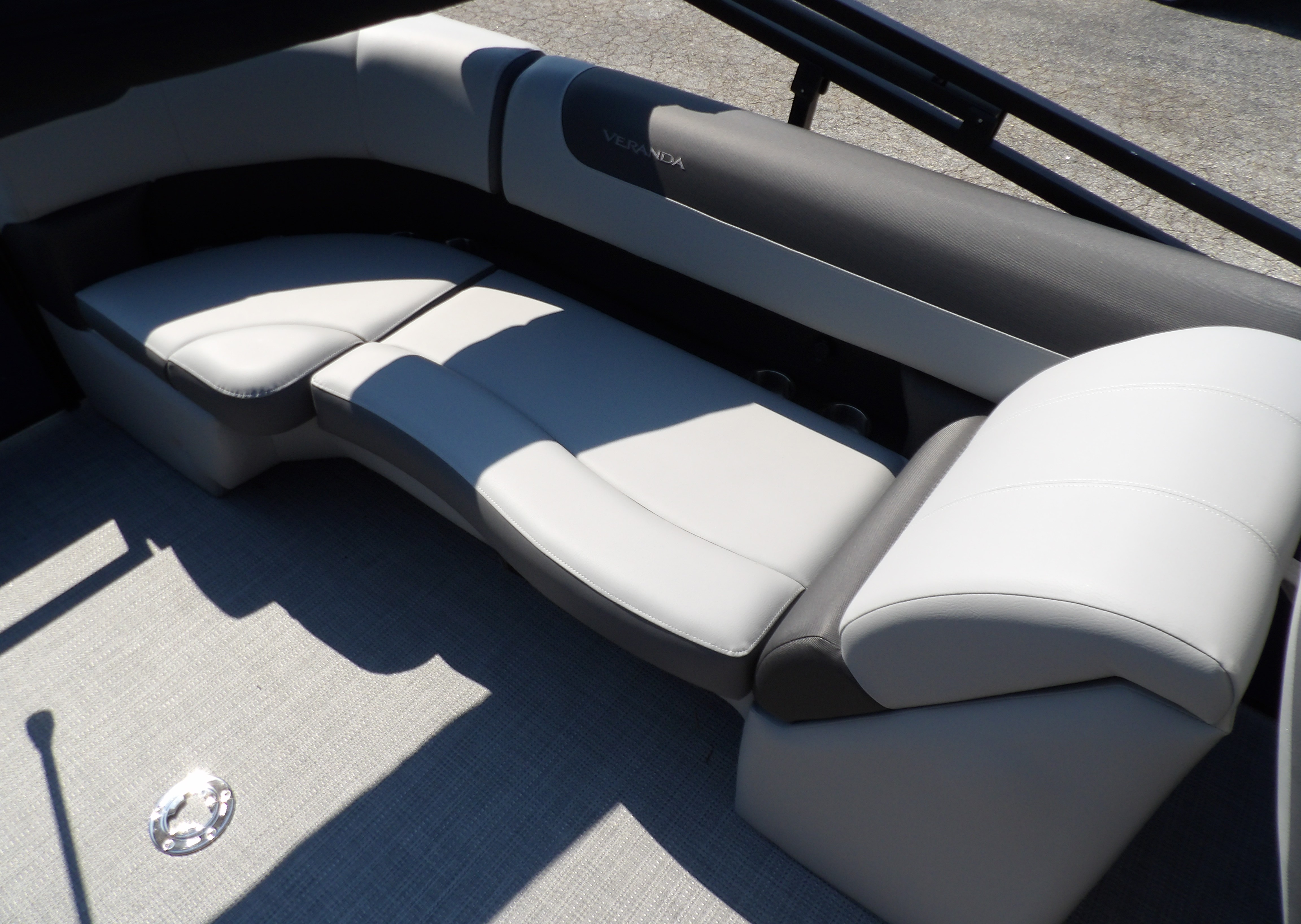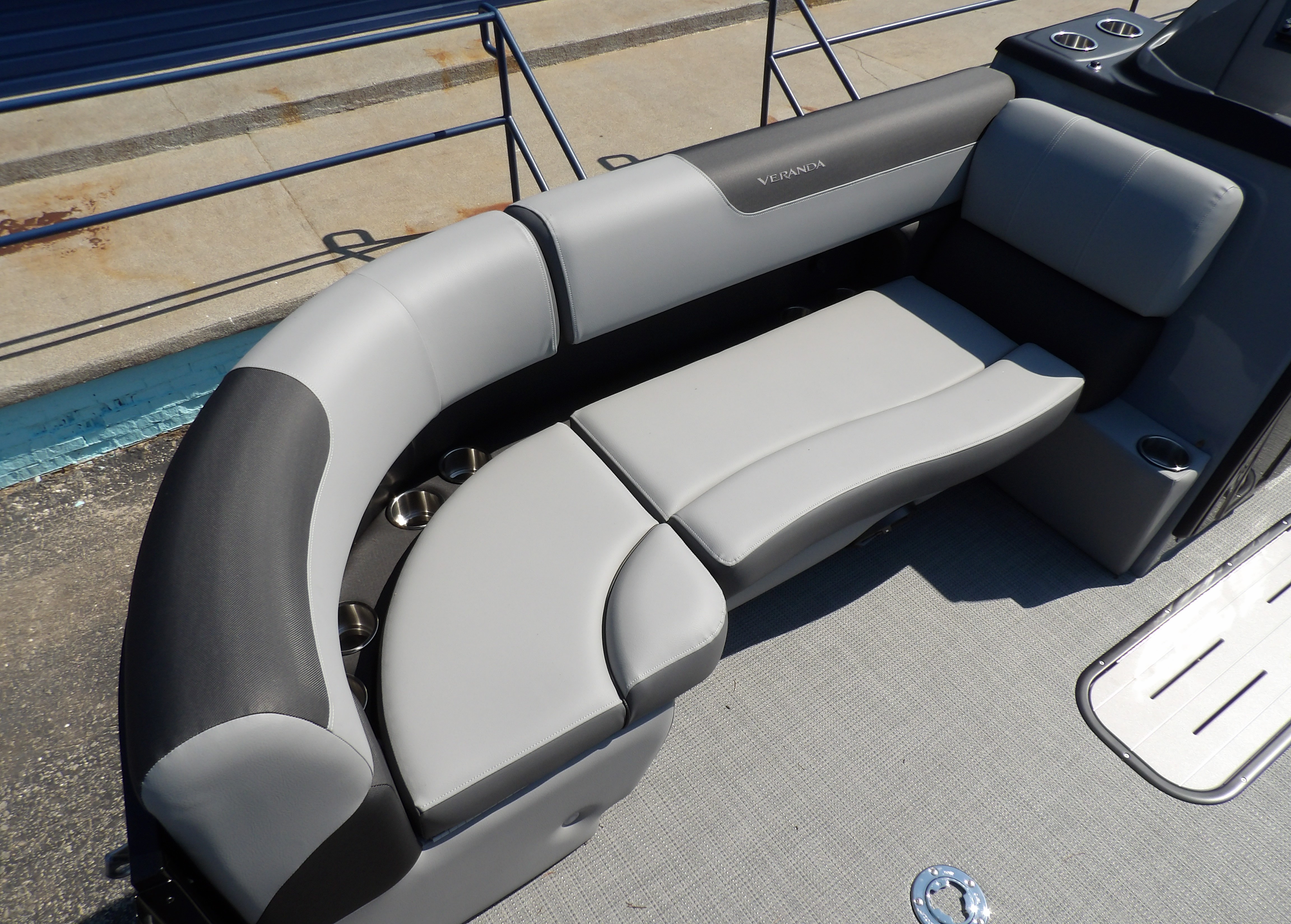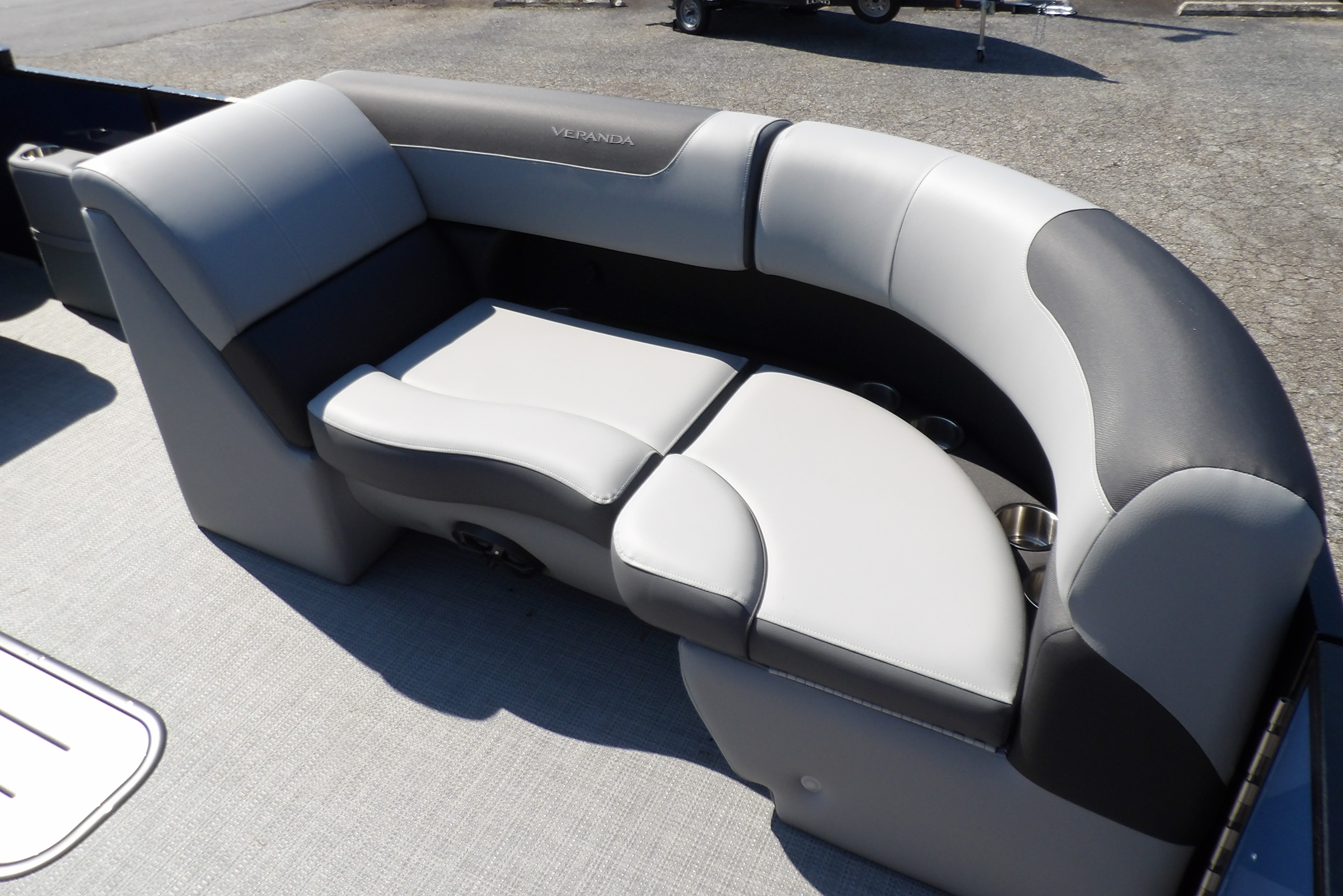 This new 2026 Veranda VR22RC Relax series boat in beautiful Black & Indigo Blue 2-Tone was updated & upgraded for the 2025 model year. This boat received new interior and exterior touches and a new helm just to name a few. This Veranda VR22RC comes with all the standard features of the Relax series plus these added options: big power from a 250 HP Yamaha SHO Four Stroke outboard, the XL package which includes larger 27" toons, a power bimini, two-tone paint option, in-floor storage, console shift panel with fire extinguisher & cell phone holders, adjustable pedestals and digital gauges. This also has the woven floor upgrade, side keels & easy step ladder. This well optioned Veranda is looks just as good cruising pulling tubers & skiers as it does simply parked in your favorite cove enjoying the South Carolina summer. This Tritoon can be delivered to your dock on the water or we have a selection of trailers available for purchase. For more details, the latest in pricing and incentives give us a call at Eclipse Marine Seneca (864) 653-6767 or stop in and see us at 305 US Hwy 123 bypass Seneca, SC. Deck Length: 289 in. (7300 mm)