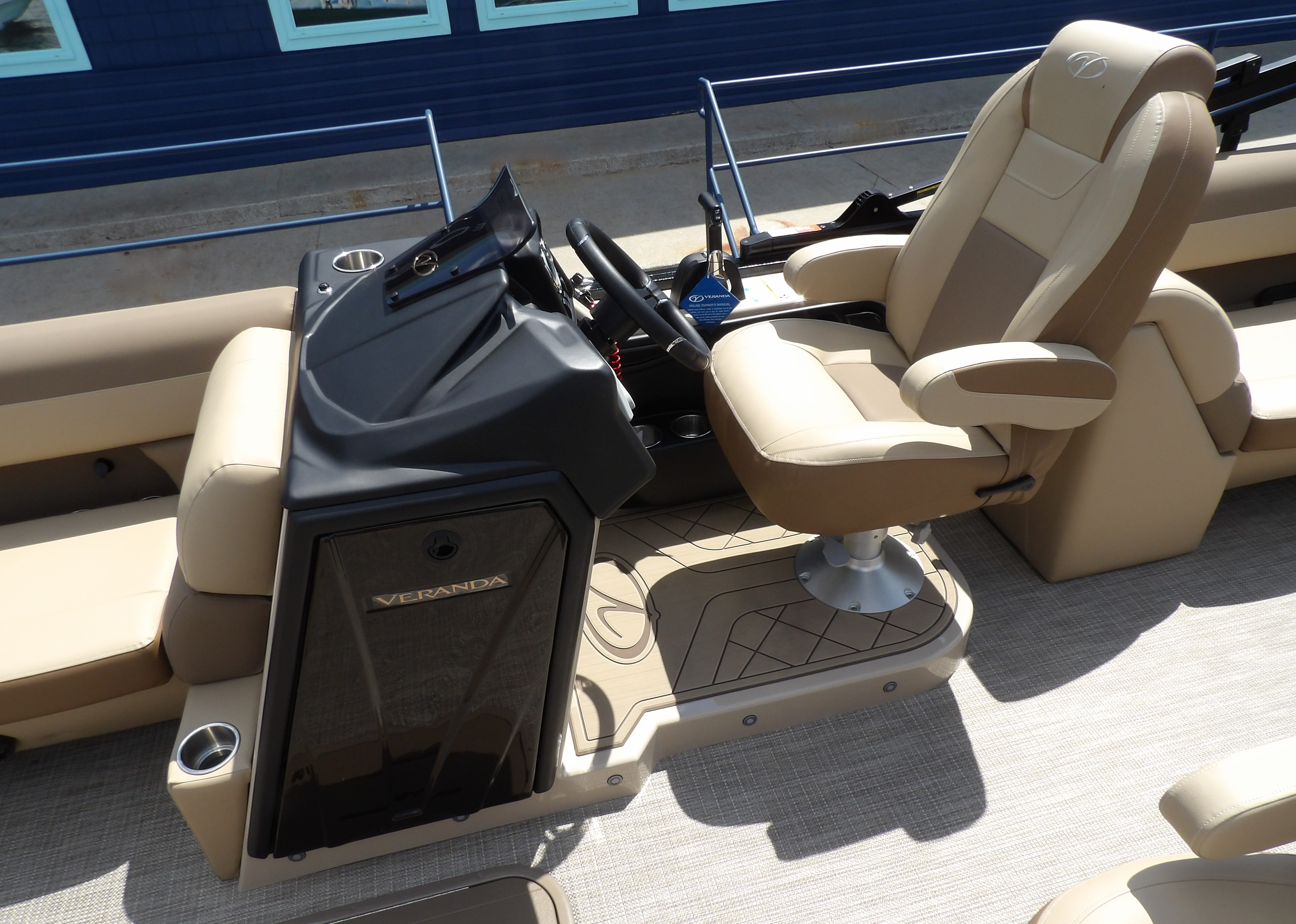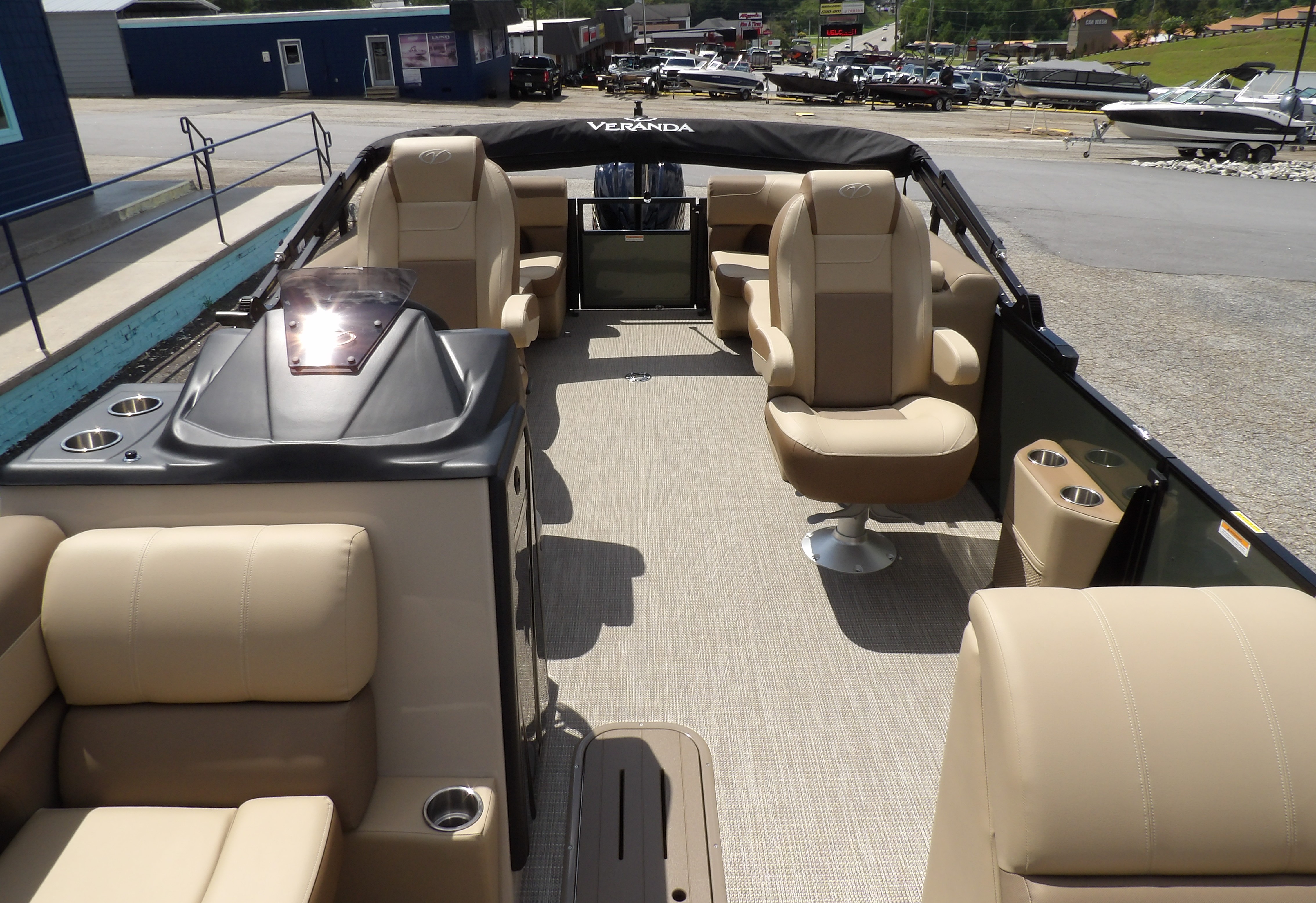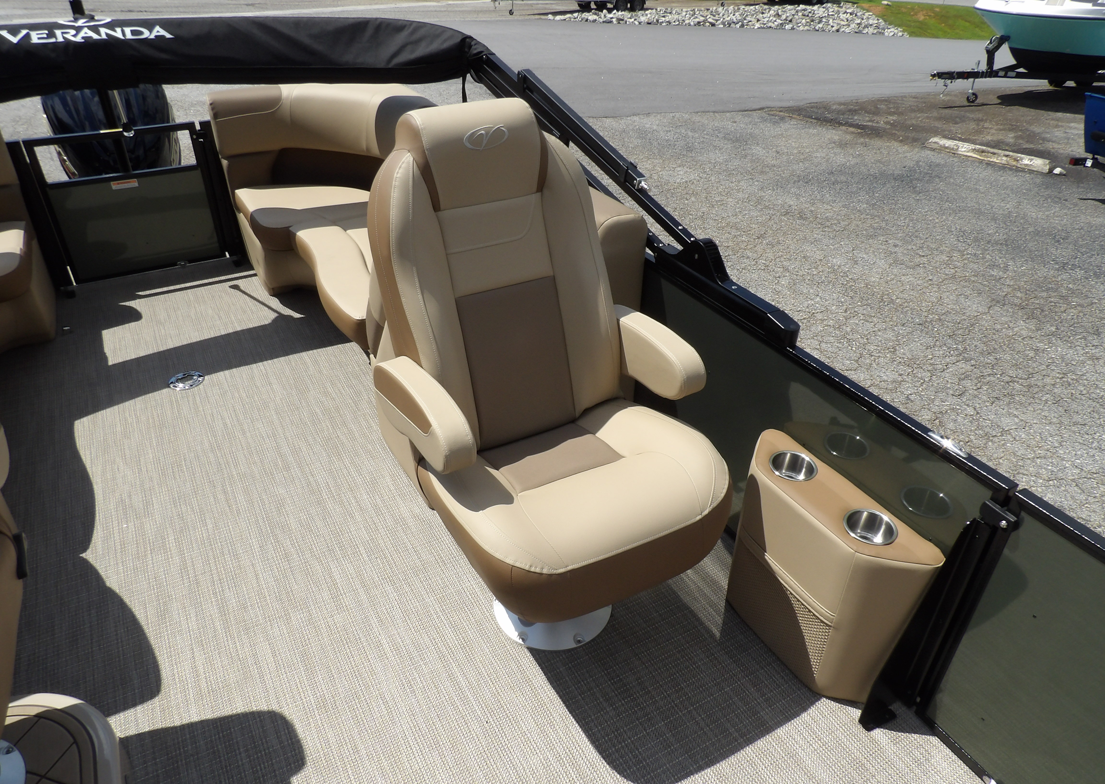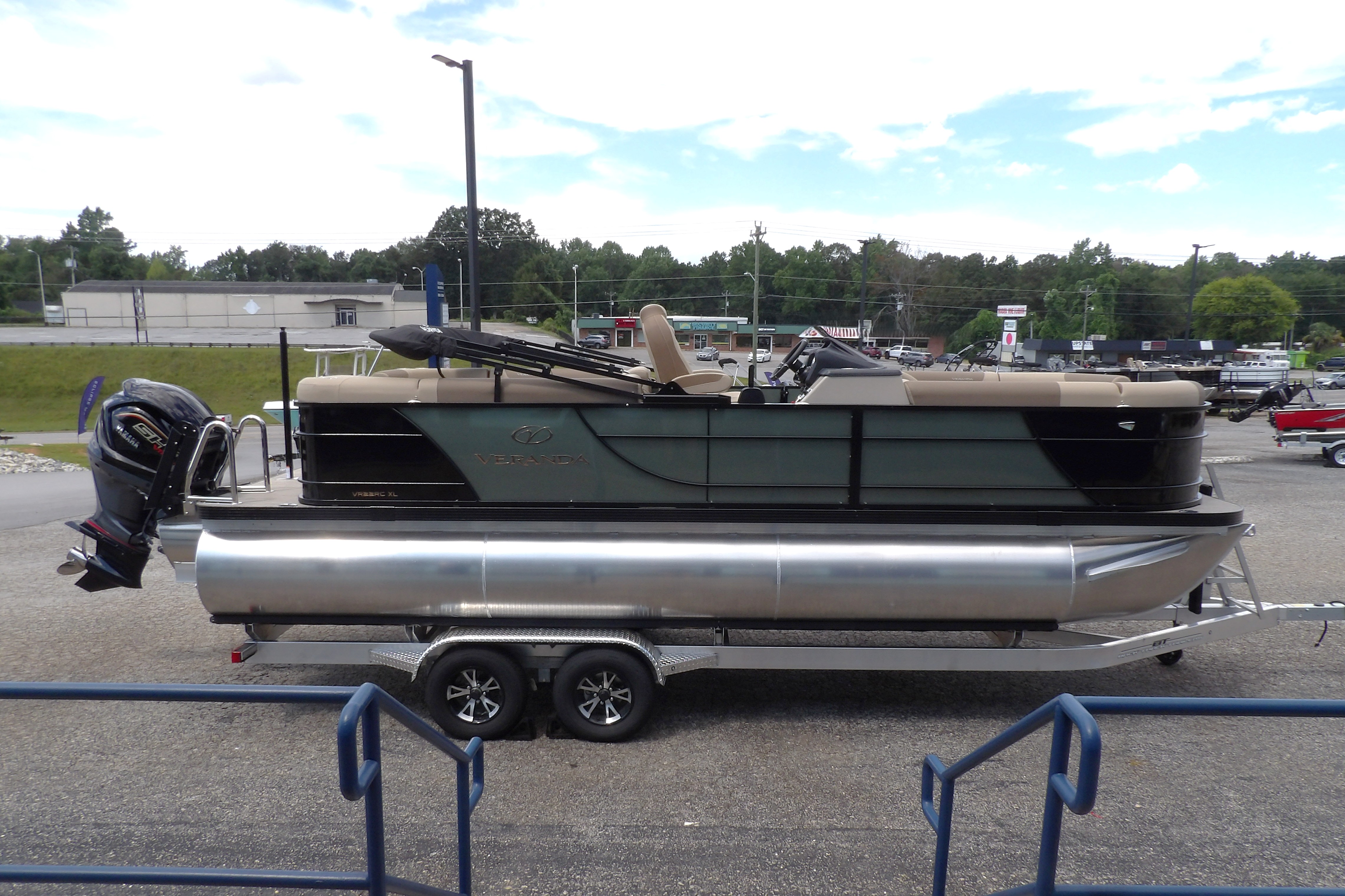 This new 2026 Veranda VR22RC Relax series boat in beautiful Black & Sage Green Metallic 2-Tone was updated & upgraded for the 2025 model year. This boat received new interior and exterior touches and a new helm just to name a few. This Veranda VR22RC comes with all the standard features of the Relax series plus these added options: big power from a 250 HP Yamaha SHO Four Stroke outboard, the XL package which includes larger 27" toons, a power bimini, two-tone paint option, in-floor storage, console shift panel with fire extinguisher & cell phone holders, adjustable pedestals and digital gauges. This also has the woven floor upgrade & easy step ladder. This well optioned Veranda is looks just as good cruising pulling tubers & skiers as it does simply parked in your favorite cove enjoying the Georgia summer. This Tritoon can be delivered to your dock on the water or we have a selection of trailers available for purchase. For more details, the latest in pricing and incentives give us a call at Sinclair Marine (478) 449-3300 or stop in and see us at 170 SInclair Marina Road Milledgeville, GA.