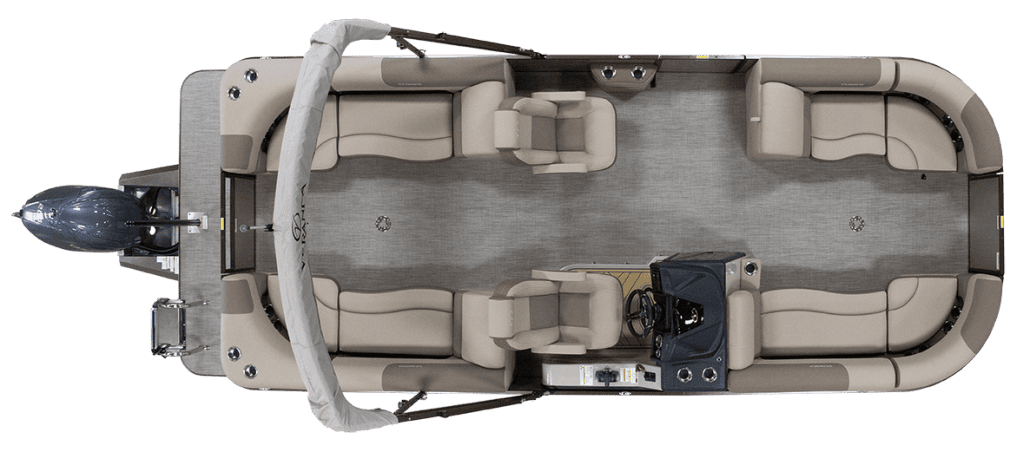 New 2026 Veranda 22 footer in a brand new for '26 color Caribou Brown & a Blended Latte tan interior. This Relax series model was recently updated & upgraded! This boat received new interior and exterior touches and a new helm just to name a few. This Veranda VR22RC comes with all the standard features of the Relax series plus these added options: reliable power from a 200 HP Yamaha SHO Four Stroke outboard with stainless prop, 27" triple toons, a power bimini, woven floor upgrade, side keels & easy step ladder. This Relax series Veranda is perfect for family, friends and pets a like. With room for 15, you can bring them all. This Tritoon can be delivered to your dock on the water or we have a selection of trailers available for purchase. For more details, the latest in pricing and incentives give us a call at Eclipse Marine Seneca (864) 670-2250 or stop in and see us at 305 US Hwy 123 bypass Seneca, SC. *All boats are subject to manufacturer freight, prep, doc, state/ local taxes. Prices subject to change without notice.