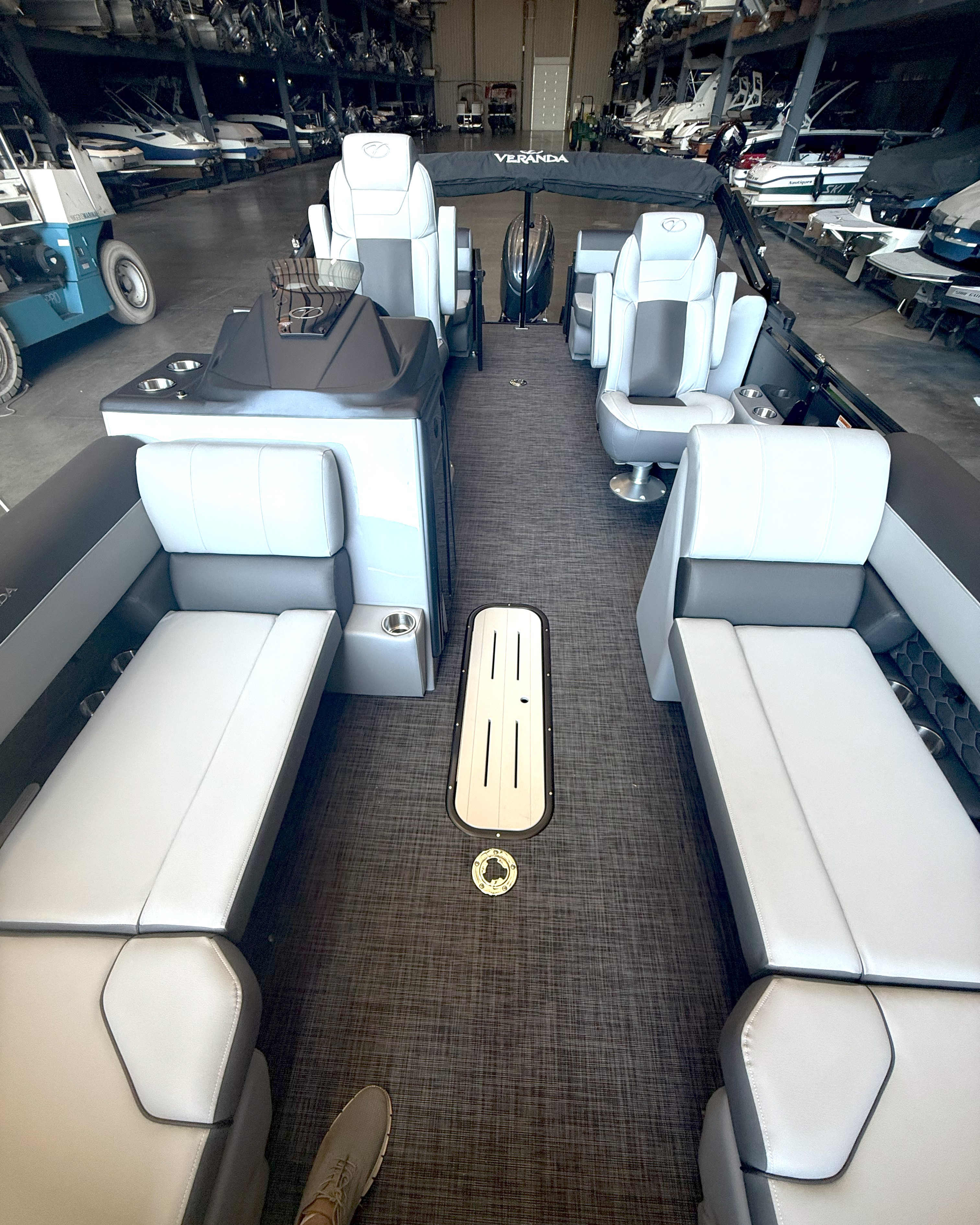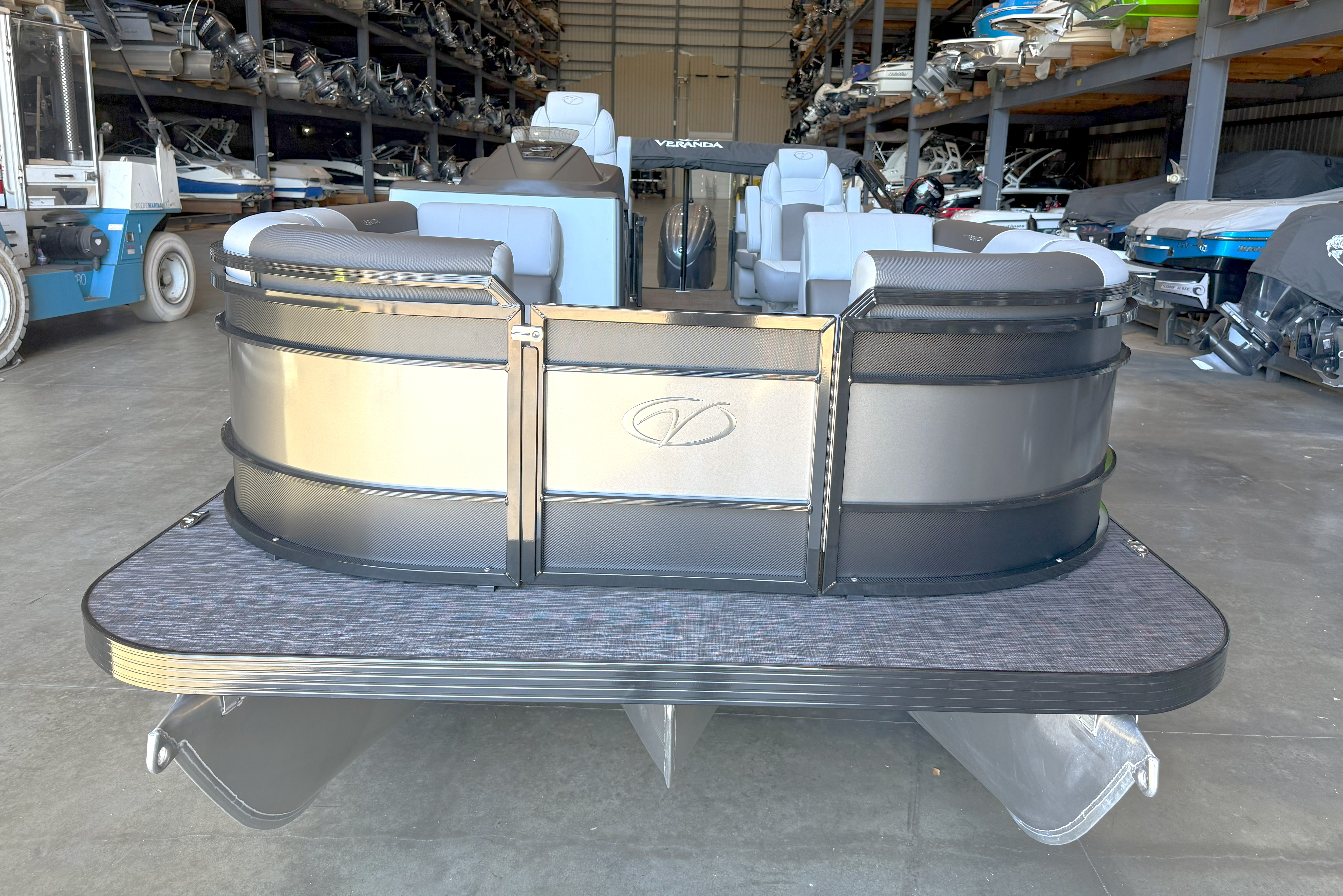New 2026 Veranda VR235RC - a brand-new model for this year offering additional rear deck space for the water sports enthusiast. This luxury model Veranda features all new touches and design cues to differentiate it from your average tritoon. This Veranda tritoon comes with all the standard features of the Relax series plus the following added options: Power from a Yamaha 200 hp Four Stroke outboard, the XL package featuring 27" toons & in floor storage, the new Static Black Cool Chil flooring upgrade, side keels & the easy step ladder. Stand out from the crowd and cruise the lake for years to come in style. We can deliver this tritoon to your dock or if you need a trailer, we have a selection available for purchase. For more details, plus latest in pricing and incentives give us a call at Sinclair Marine (478) 449-3300 or stop in and see us at 170 SInclair Marina Road Milledgeville, GA.