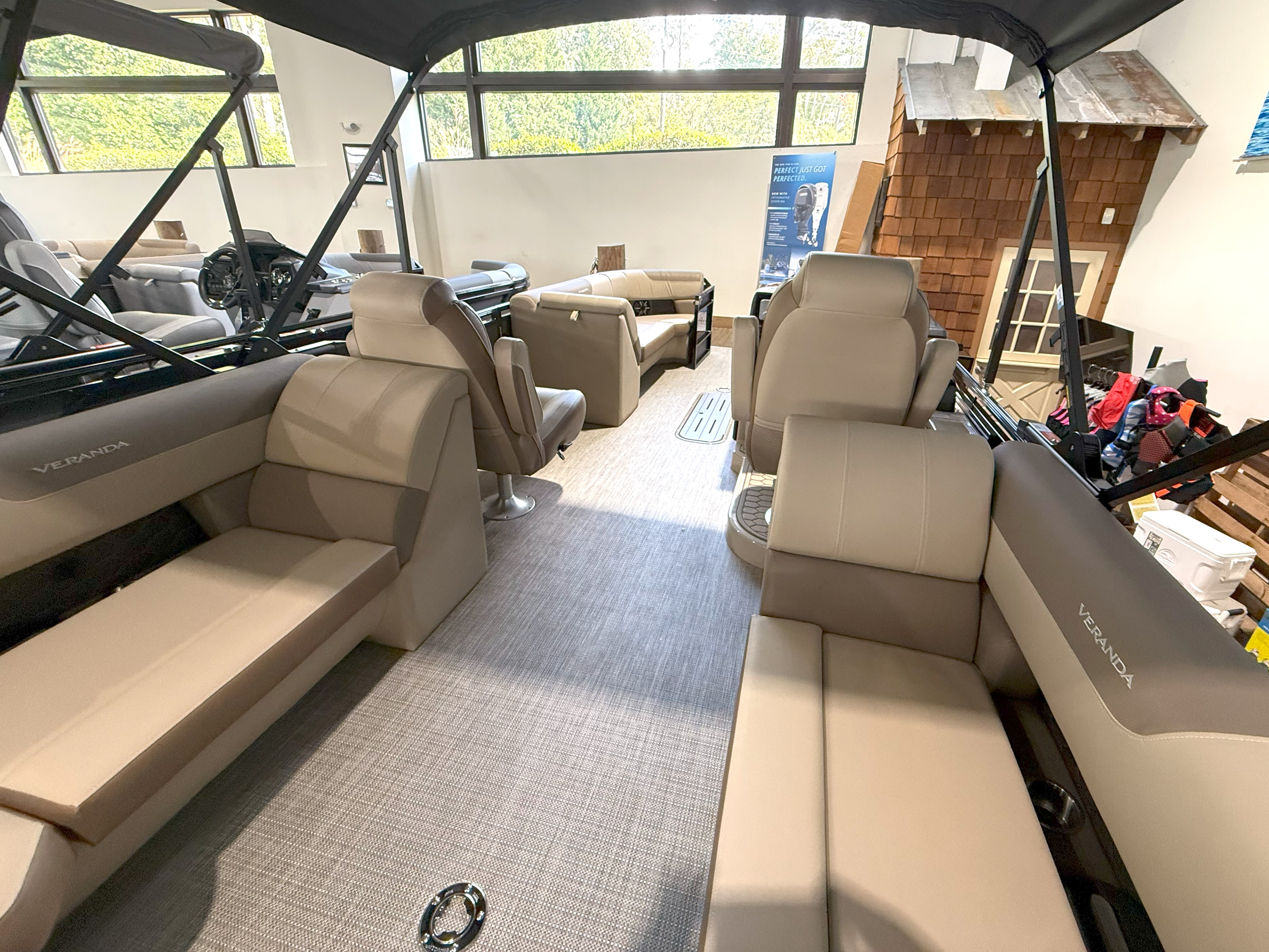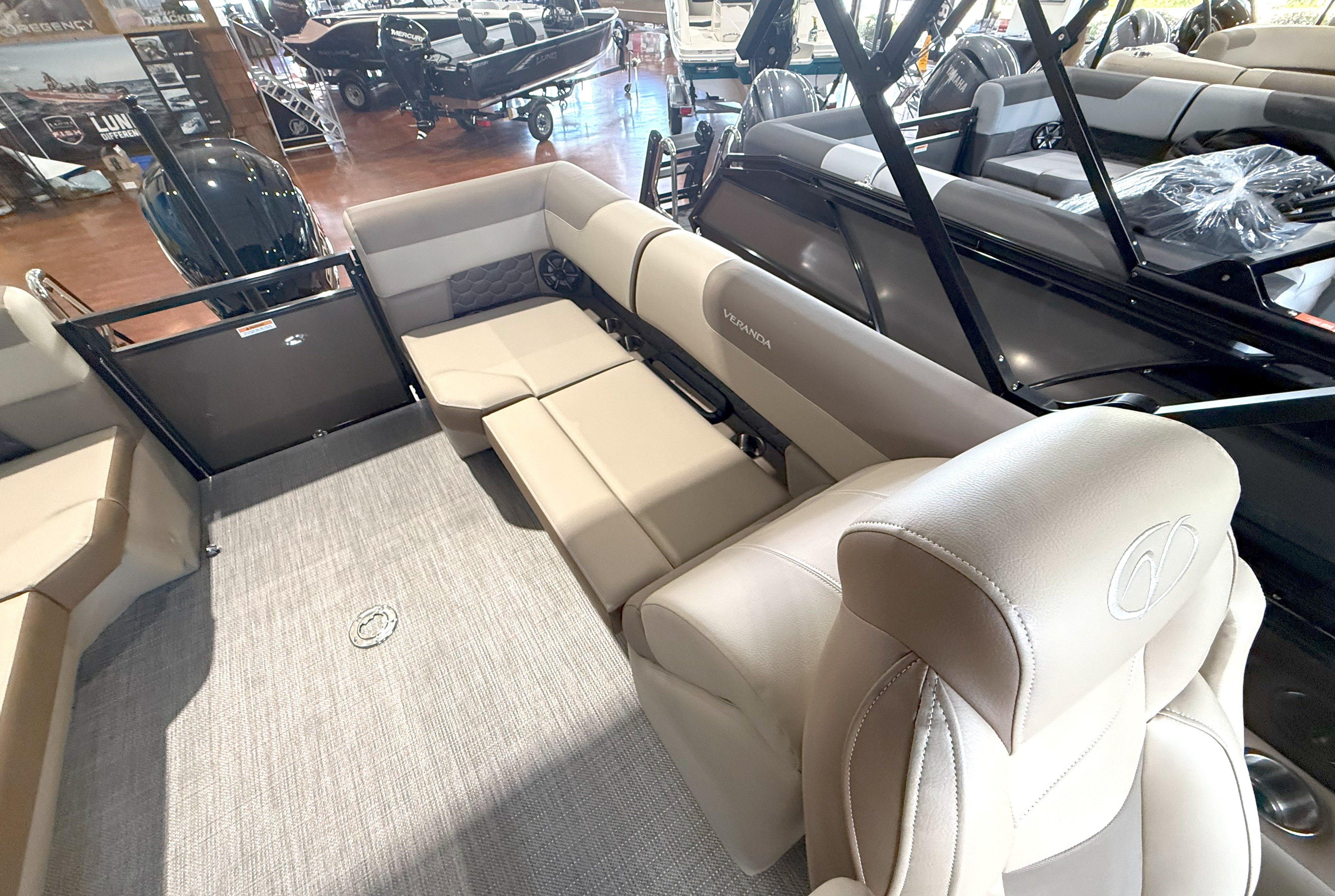 New 2026 Veranda VR235RC - a brand-new model for this year offering additional rear deck space for the water sports enthusiast. This luxury model Veranda features all new touches and design cues to differentiate it from your average tritoon. This Veranda tritoon comes with all the standard features of the Relax series plus the following added options: Big Power from a Yamaha SHO 250 hp Four Stroke outboard, upgraded Power Assist steering, the XL package featuring 27" toons & in floor storage, woven tan flooring upgrade, side keels & the easy step ladder. Load this Veranda up with friends and neighbors for high-speed cruising or casual boating. The choices are endless with this luxury tritoon. We can deliver this tritoon to your dock or if you need a trailer, we have a selection available for purchase. For more details, plus latest in pricing and incentives give us a call at Sinclair Marine (478) 449-3300 or stop in and see us at 170 SInclair Marina Road Milledgeville, GA.