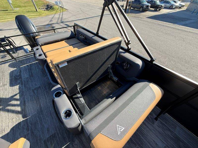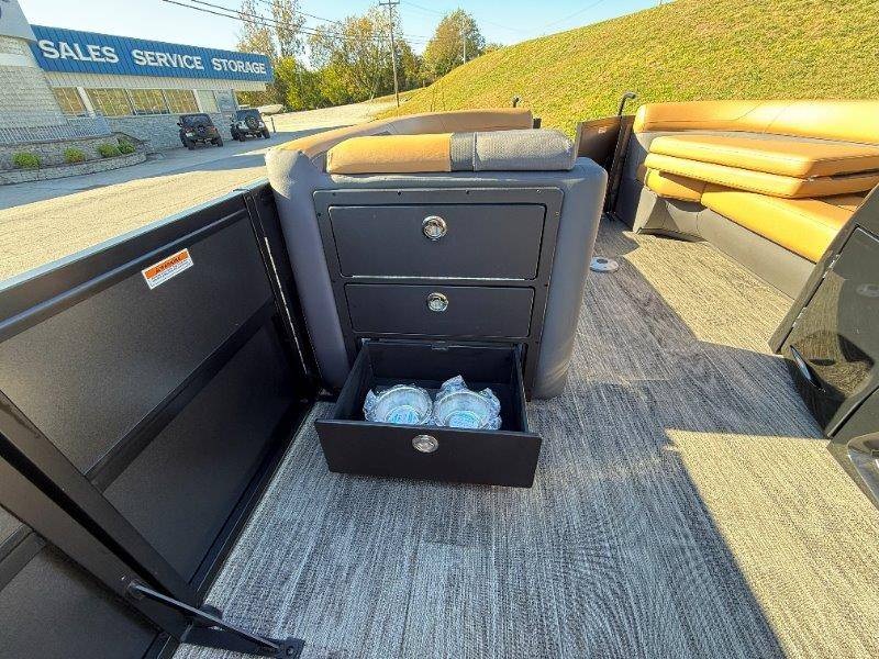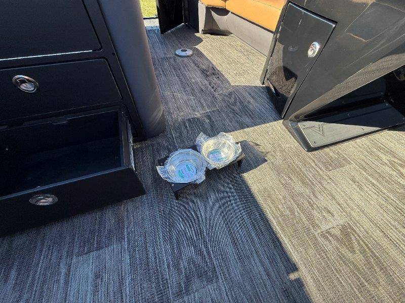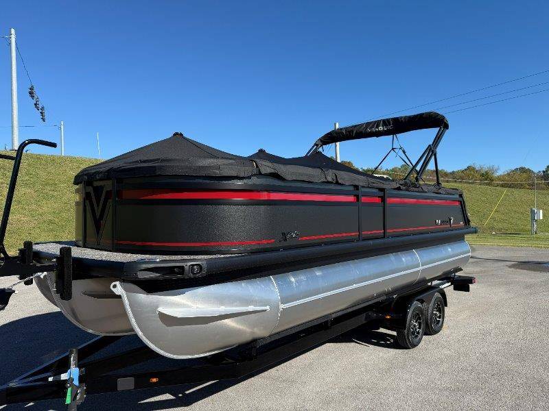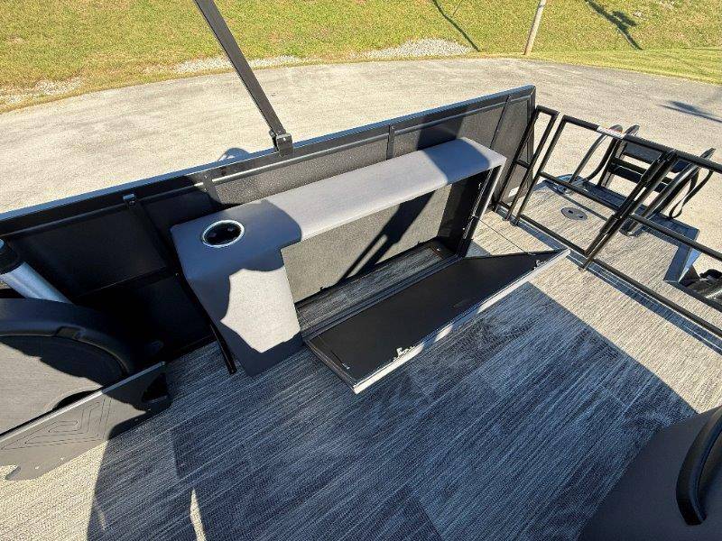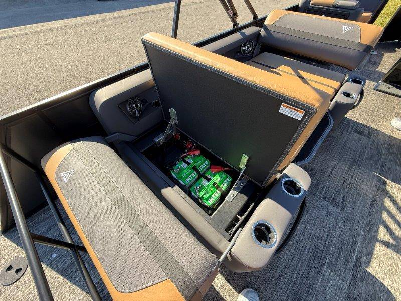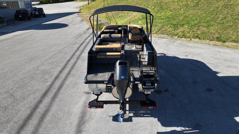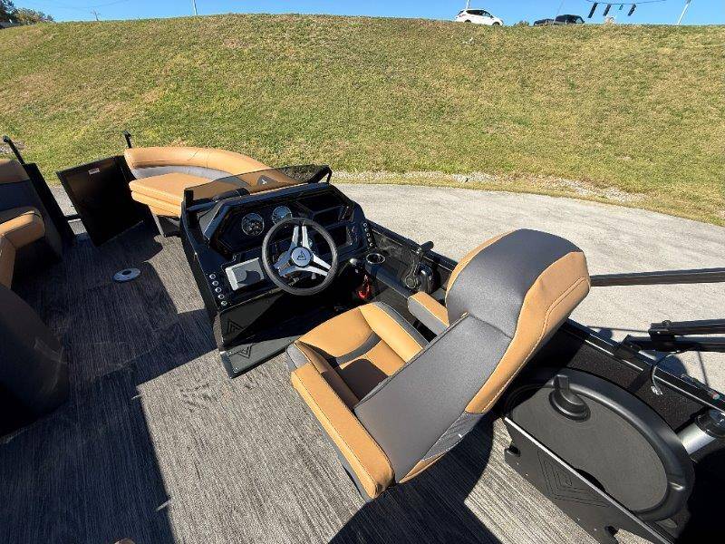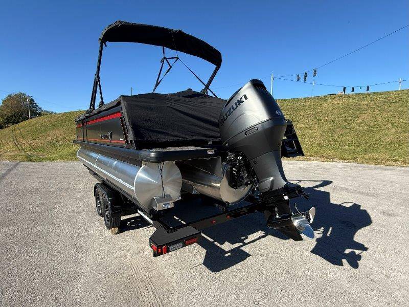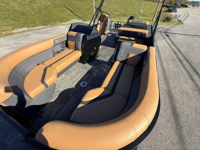 2026 Viaggio Lago X22D Standard Features 2' Extended Swim Deck Fuel Tank Size: Bi-Toon = 26 gal | Tripletoon = 58 gal 0.100 Gauge Metal on Tubes Integrated Corner Cap Navigation Lights w/Stainless Steel Cleats Stainless Steel Retractable Ladder 2" Extrusion Rail Design Black Anodized Rails Blackout Decals or Black w/Chrome Decals Fiberglass Helm 5" Viaggio Multifunctional Gauges | GPS Speed, Tach, Fuel, Trim, & LED Display Dash w/Backlit Push Button Switches Glass Windscreen Gussi Italia Molino Steering Wheel Master Power Switch Clarion Audio System 6.5" 50W Speakers x4 Black Round Table Kit w/Removable Table Post Integrated Cupholders w/Dual Port USB Chargers & Lumbar Speakers Premium Black Canvas Crib Cover w/In-Rail Clip System Vented Pole Holders & Extendable Aluminum Poles RGB Exterior Light Package · Table Holder · Three Drawer Chaise Storage · ACR Battery Management System · Suzuki Pre-Rig · 22' Tripletoon (27") Performance Pkg - Seastar. Sealed Strakes, PF Shield · Tube Protectant · Pontoon Side Keel (Port & Starboard) · Flooring, Lakeport Plank Shadow 18' - 22' · Integrated LED Docking Lights w/Stainless Flip-Up Cleats · Black Fencing · Carerra Red Metallic Stripe · Wireless Charging in Helm · Seastar Power Assist Steering (Recommended for 200HP+) · Engine Hang & Rig w/Prop (SS) · RGB Interior Light Package · Cognac Night w/Black Painted Helm · Lillipad Stern Boarding Ladder w/ Ghost Mounts