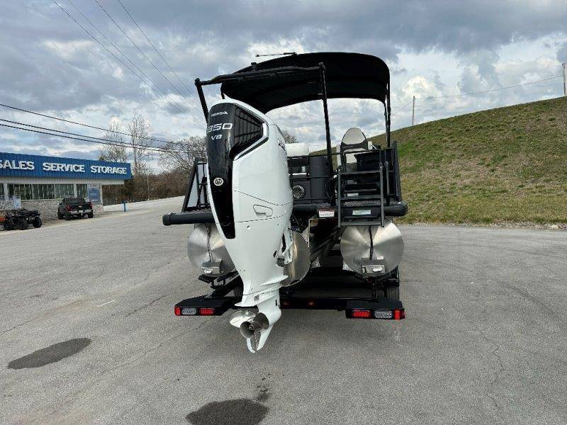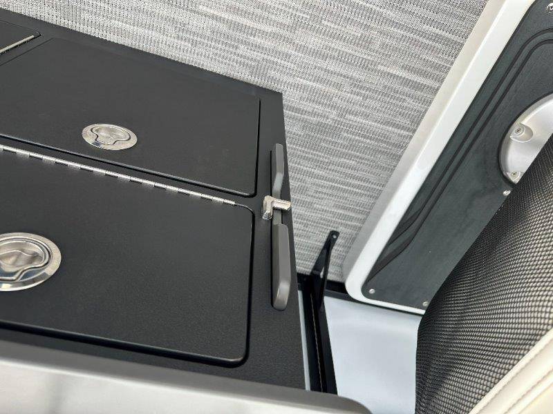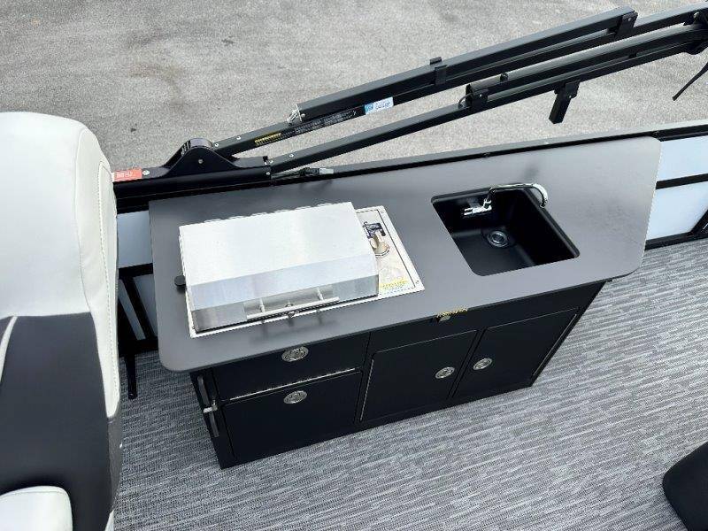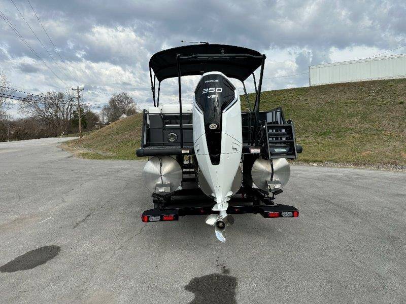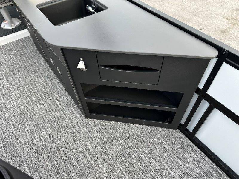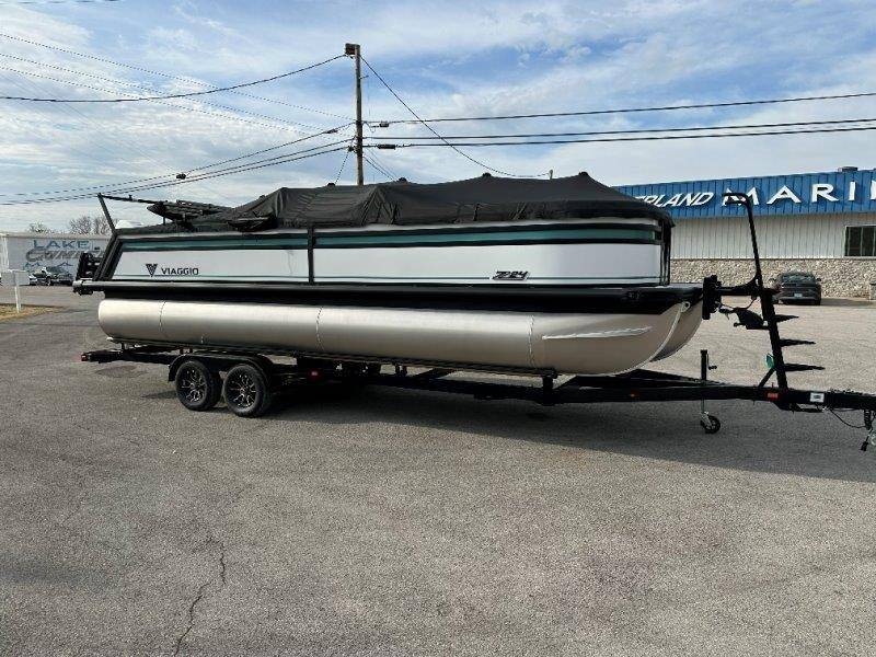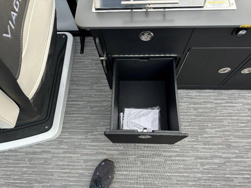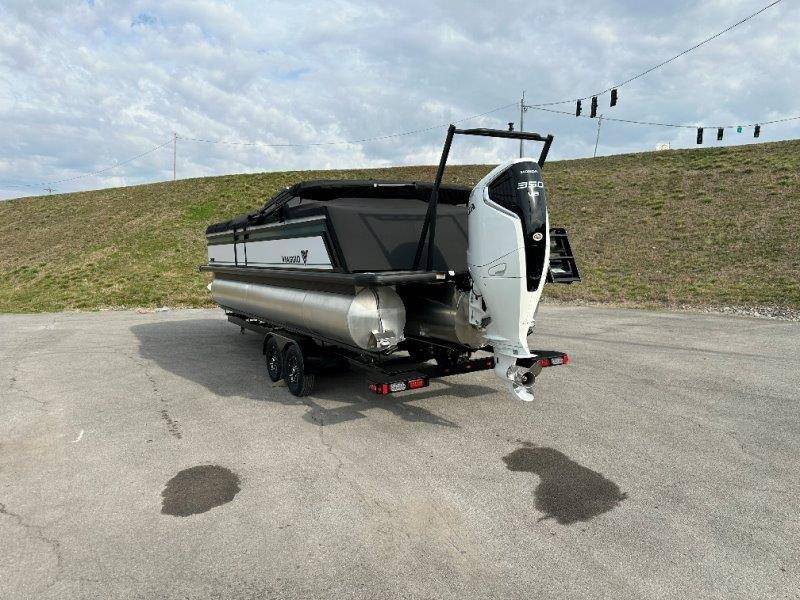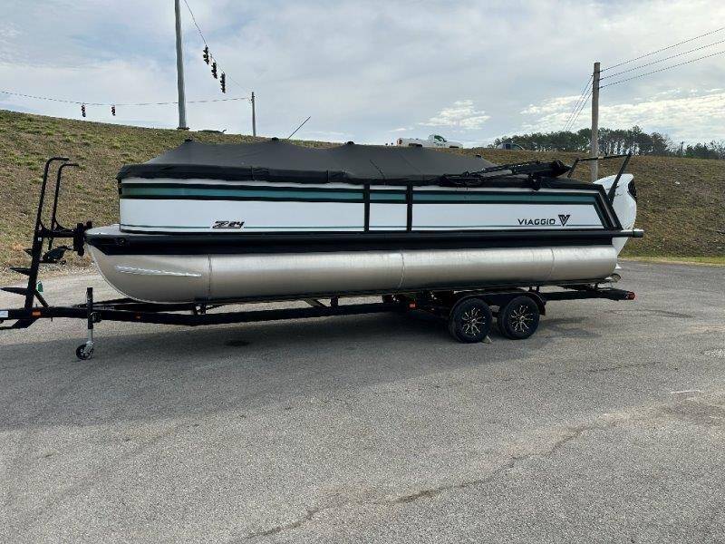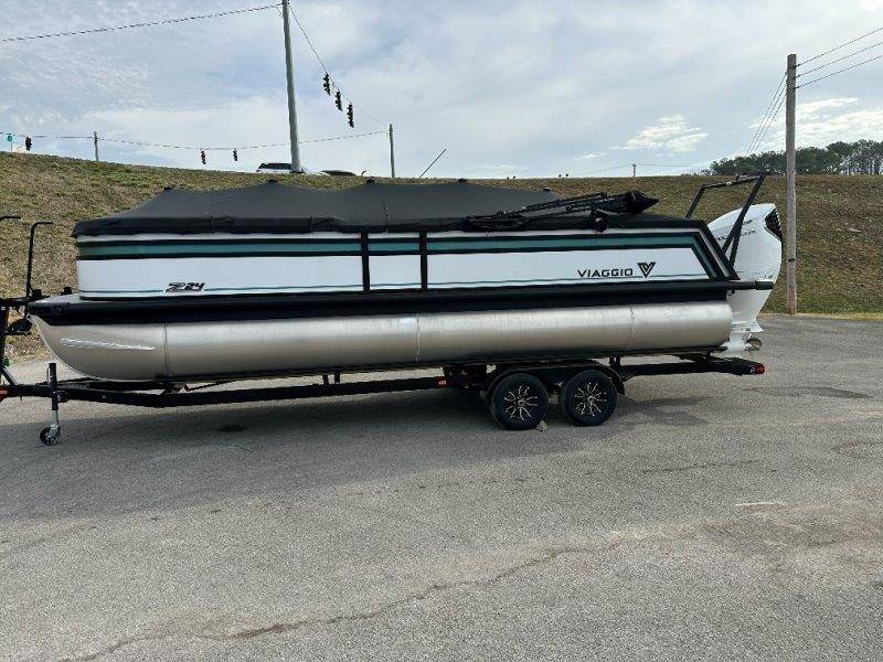 2026 Viaggio Lago Z24B Standard Features OPTIONS 2' Extended Swim Deck Fuel Tank Size: Bi-Toon = 26 gal | Tripletoon = 58 gal 0.100 Gauge Metal on Tubes Integrated Corner Cap Navigation & Docking Lights w/Stainless Pull-Up Cleats 5 Step REVO Lillipad Ladder Ghost Mounts Pre-Drilled 2" Extrusion Rail Design Black Anodized Rails Vision Gate | Bow Only Blackout Graphics or Black w/Chrome Graphics Fiberglass Helm 3" Raised Helm Platform w/Snap Removable Slip Resistant Lago Z Foam Mat 5" Viaggio Digital Gauges|GPS Speed, Tach, Fuel, Trim, & LED Display Custom Molded Dash Panel w/Backlit Resettable Push Buttons Glass Windscreen Imperiale Steering Wheel Simrad NSX7 Flush-Mount Digital Display Master Power Switch JL Audio System w/HTML User Interface & Volume Control Knob 6.5" M3 60W Speakers x4 200W 2-Channel Amplifier w/M3 10" Subwoofer LED Interior Lights Including Cup Holders, Speakers, Tables & Seat Bases, Raised Helm EGIS ACR Battery Management System Armrest Built Into All Chaise Lounges Custom Vinyl Wrapped AFT Design w/Wings Premium Black Canvas Crib Cover w/In-Rail Clip System | Vented Pole Holders & Extendable Aluminum Poles · Black Graphics · Castle Anthracite Flooring (Grey) 22' - 24' · Brite White Grey Night w/White Painted Helm · RGB Interior Light Package · Lillipad Stern Boarding Ladder w/ Ghost Mounts · Lillipad Ghost Mounts x3 (Pre-Installed) · Xtreme Ski Tow Bar (Black) - 51" · Engine Hang & Rig w/Prop (SS) - 350hp+ · Honda iST Digital & Adapter (115-350HP) · 24' Tripletoon (27") Performance Pkg - Seastar. Sealed Strakes, PF Shield · Center Toon In-Floor Storage · White Fencing · Aruba Metallic Stripe · Power Bimini w/Speed Struts · Wireless Charging in Helm · Seastar Power Assist Steering (Recommended for 200HP+) · RGB Exterior Light Package · M3 AFT Speakers