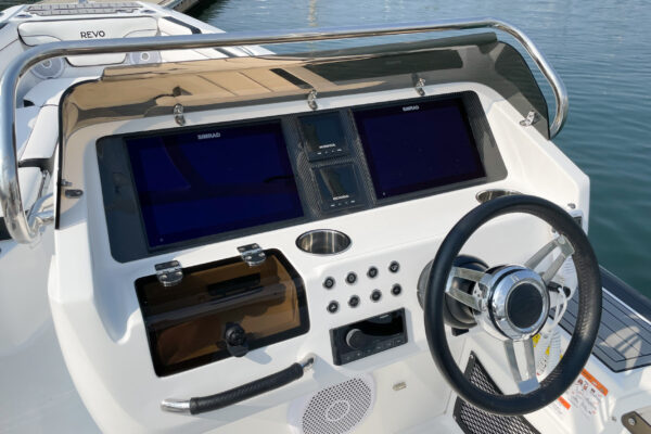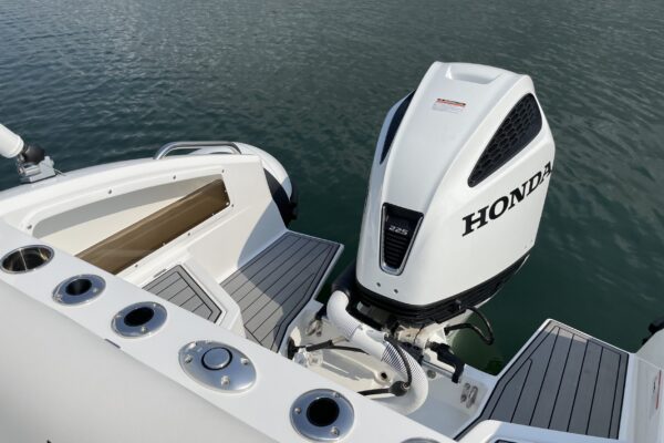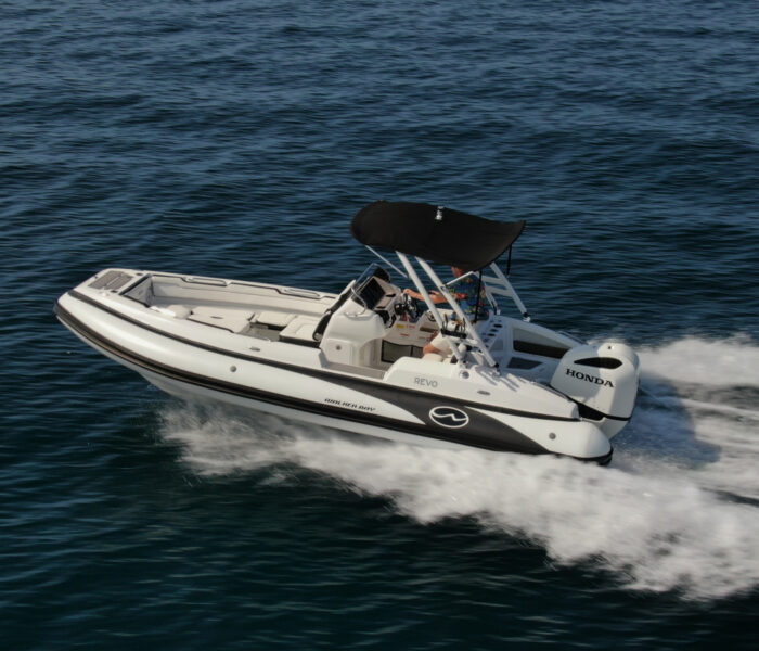The Walker Bay 22. The Walker Bay 22 is a luxury runabout boat designed with a wide beam, giving both the driver and passengers plenty of space and comfort—something you’d typically expect from much larger boats. The oversized console not only provides great protection for the driver but also has plenty of room for electronics like a stereo or two 12″chart plotters. Plus, its innovative polyurethane stringer system fuses the hull and deck into a single, solid piece, offering extra strength, positive flotation, and a smoother, more shock-absorbing ride. Standard Features: Dual Driver-Passenger 2 Position Flip-Up Bolster Seats Port and Starboard Reclining Ratchet Seats Convert Forward-Facing Bow Seating Into Sociable Wrap-Around Seating Side Boarding Steps & Rear Walkway Door for Easy Boarding Re-Boarding Ladder Under the Rear Step 12 Stainless Steel Beverage Holders 11+ Storage Compartments 12G Freshwater Shower System Integrated Speaker Placement For the Best Sound XL Dashboard for Dual 12″-flush-Mounted Chart Plotters Glove Box with Dual USB-12V Charger 2 Flush-Mounted Stainless Steel Rod Holders Anchor locker with Anchor Receptacle 5 Chamber Tube with Heavy-Duty Tube Fabric & Large Rub Rail Insulated Cooler Locker Heavy Duty Tow Eyes Garbage Bin / Receptacle Optional Factory Features: Available In Three Color Accent Options: Ocean Blue, Carbon Black, and Military Grey Sound System w. Amplifier, Sub Woofer, & Integrated Speakers Wake Tower / Bimini Top Sun Shade Boat Cover Table / Sun Bed Converts Bow from Dining Area to Sun Bed for Relaxation EVA Deck Flooring Portable Head Privacy Curtain for Changing 4 Flush Mounted Stainless Steel Rod Holders Telescoping Ski Pole Specifications: LOA – 660cm / 21’8″ Beam – 2.87m / 9’5″ Tube Diameter – 23 ½” Internal Length – 3.9m/ 12′10” Chambers – 5 Max Passengers – 12 Max Load – 3550 lbs Boat Weight – 1069 kg / 2357 lbs Max Power – 225hp Recommended Power – 200hp Max Recommended Speed – 50 mph Tank Size – 227L / 65gal Tube Material – Orca CSM® Model specific features Gray or Mocha EVA Steps – Included Gray or Mocha EVA Floor – Optional Stern Boarding Ladder – Included Retractable Ski Post – Optional Fresh Water Shower – Included Sun Bed – Optional