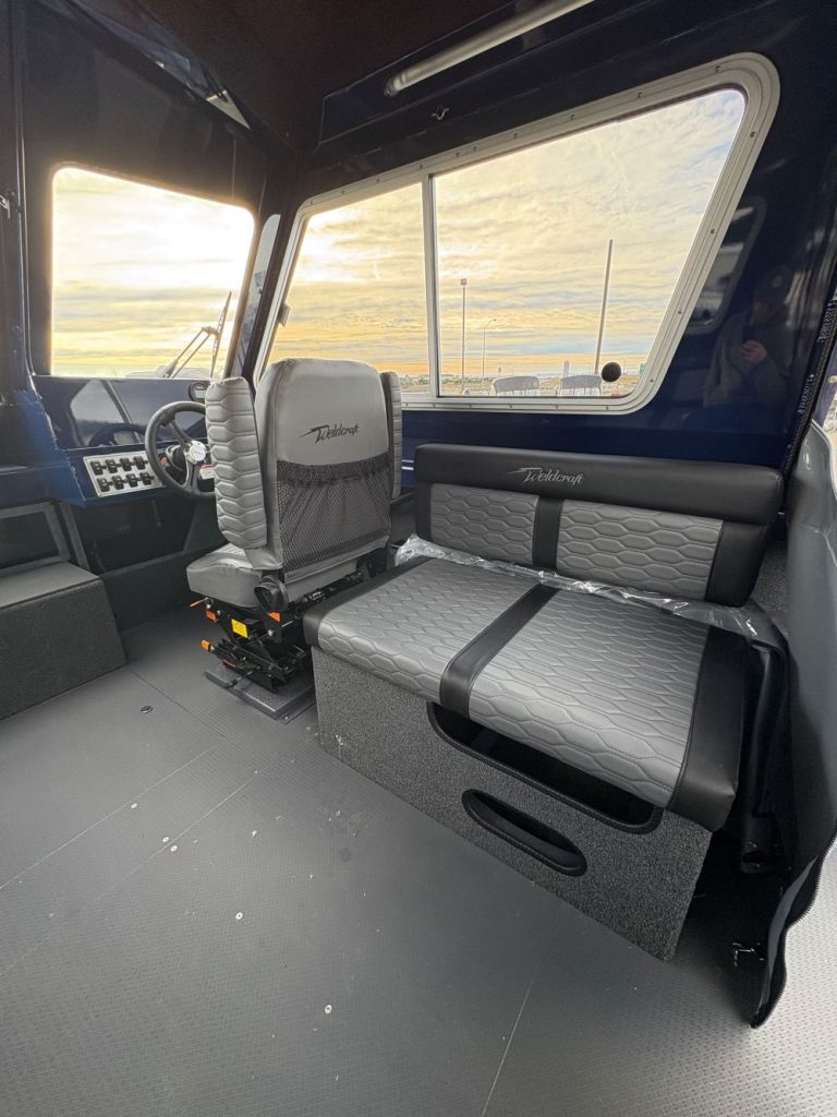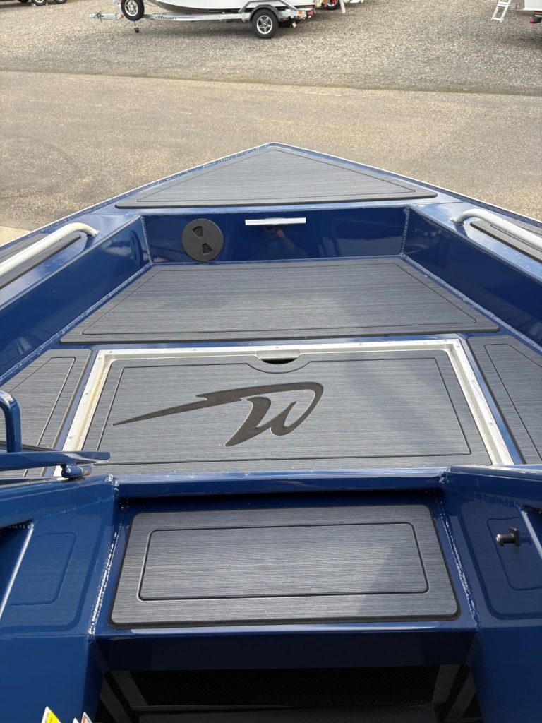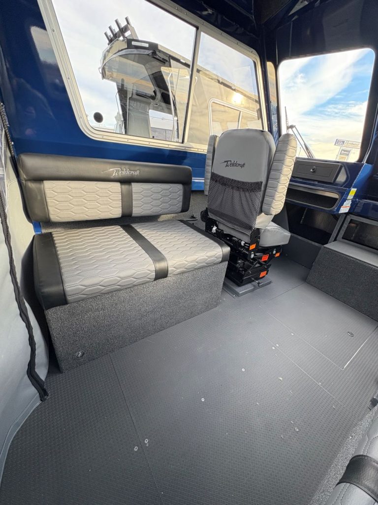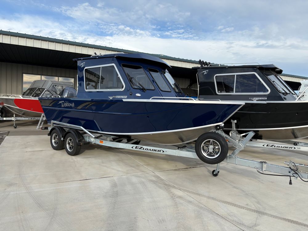 Tandem axle trailer w/welded chine guides, swing tongue, surge disc brakes, spare tire & carrier