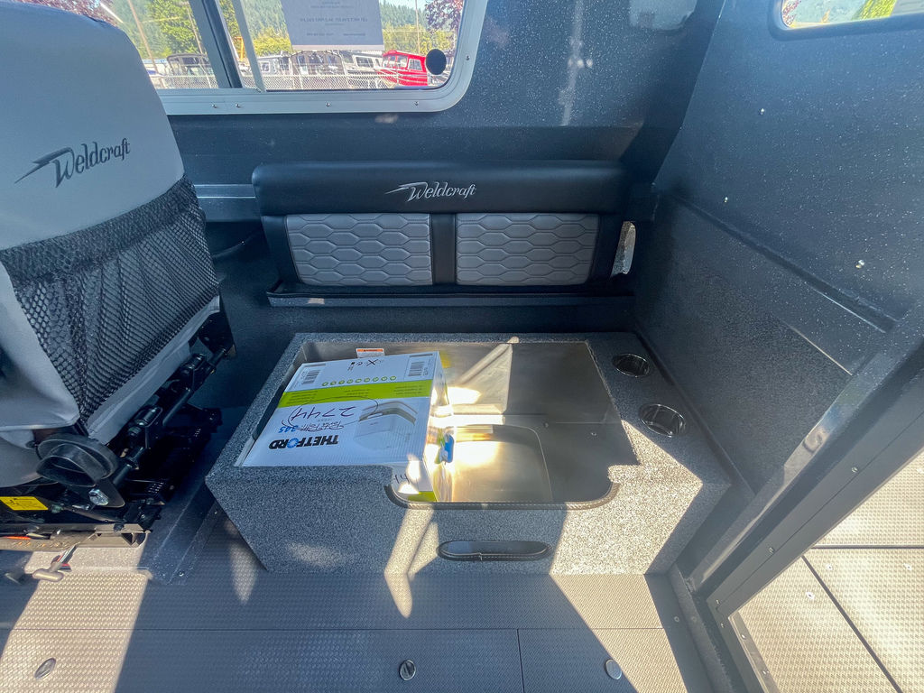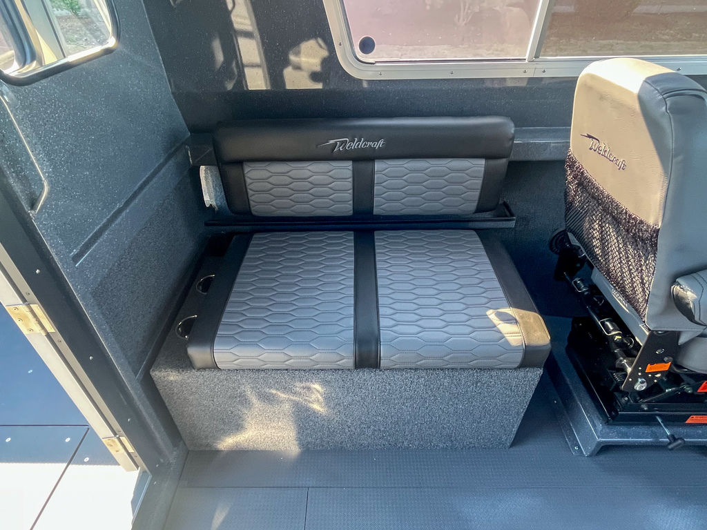 This vessel is engineered not just for enduring the rigors of the ocean; it’s built to accommodate preferences, equipped with a sturdy full hardtop for those seeking a sheltered, enclosed environment while at sea. For those who prioritize adaptability, the optional Alaskan bulkhead with its secure lockable door offers the necessary versatility for a broad range of sea-going activities. The Weldcraft 220 Ocean King is designed not just to face the ocean but to assert mastery over it, with features that deliver security and mastery in the face of the ocean’s vast unpredictability.