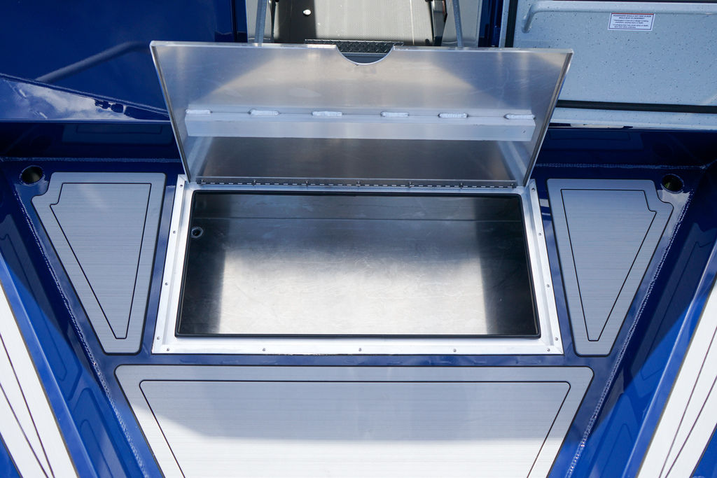The Weldcraft 240 Ocean King expands upon the robust foundation set by its 22-foot predecessor, scaling up for those who demand more from their nautical exploits. This craft increases its dimensions, granting a vast interior landscape to comfortably maneuver and store all necessary fishing equipment. Its assertive upswept bow and sharp 32-degree bow deadrise slice through the waves with authority, while the high 39.5-inch sides provide a greater degree of protection and safety for those aboard.