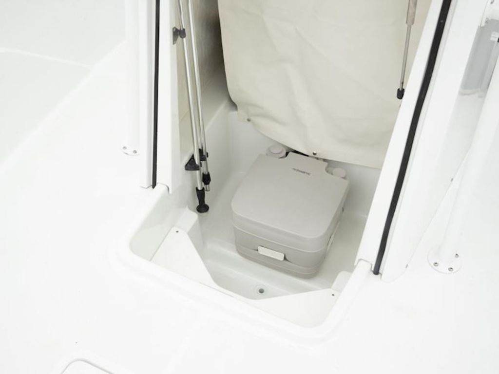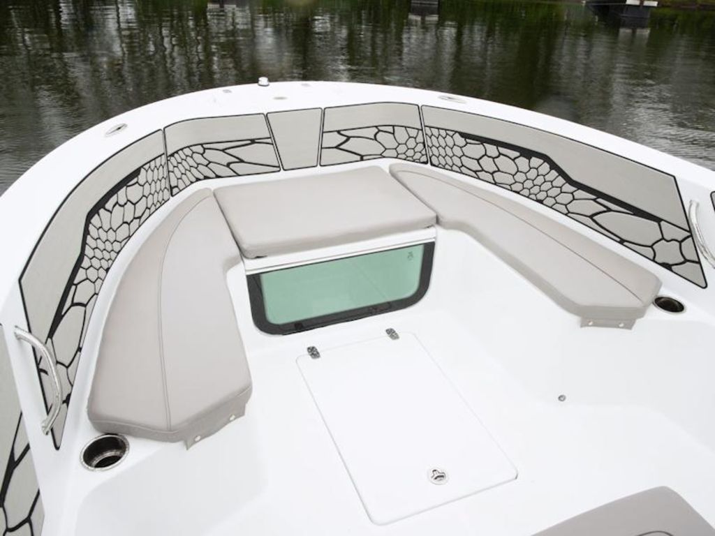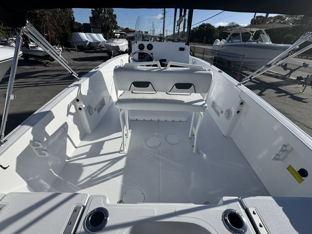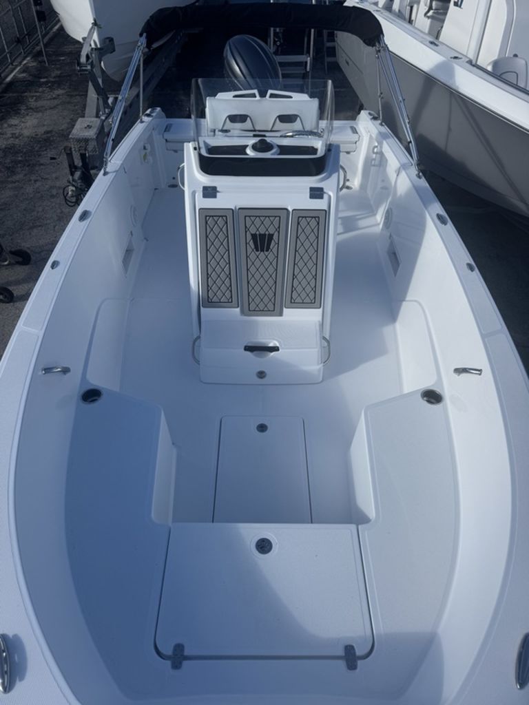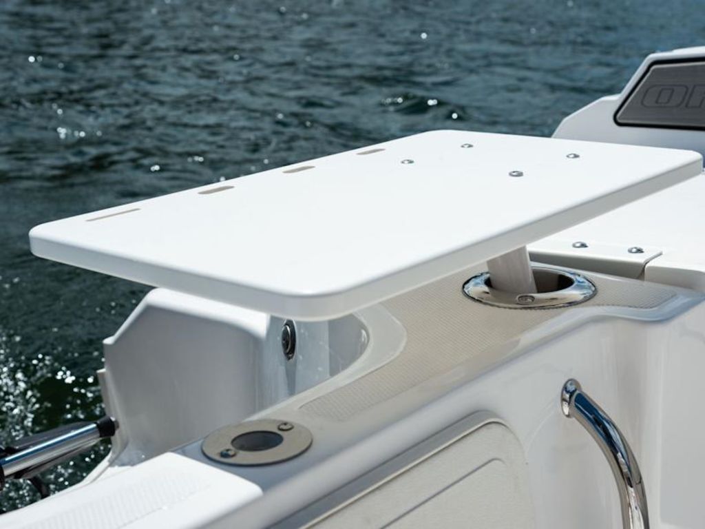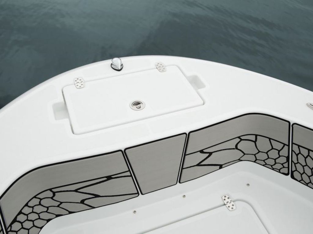 - Center console fishing layout optimized for versatility and easy movement around the boat
