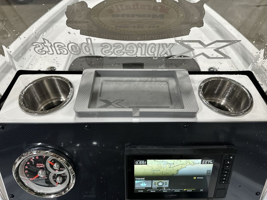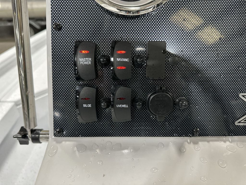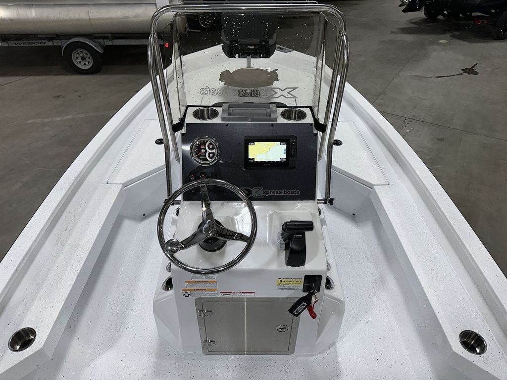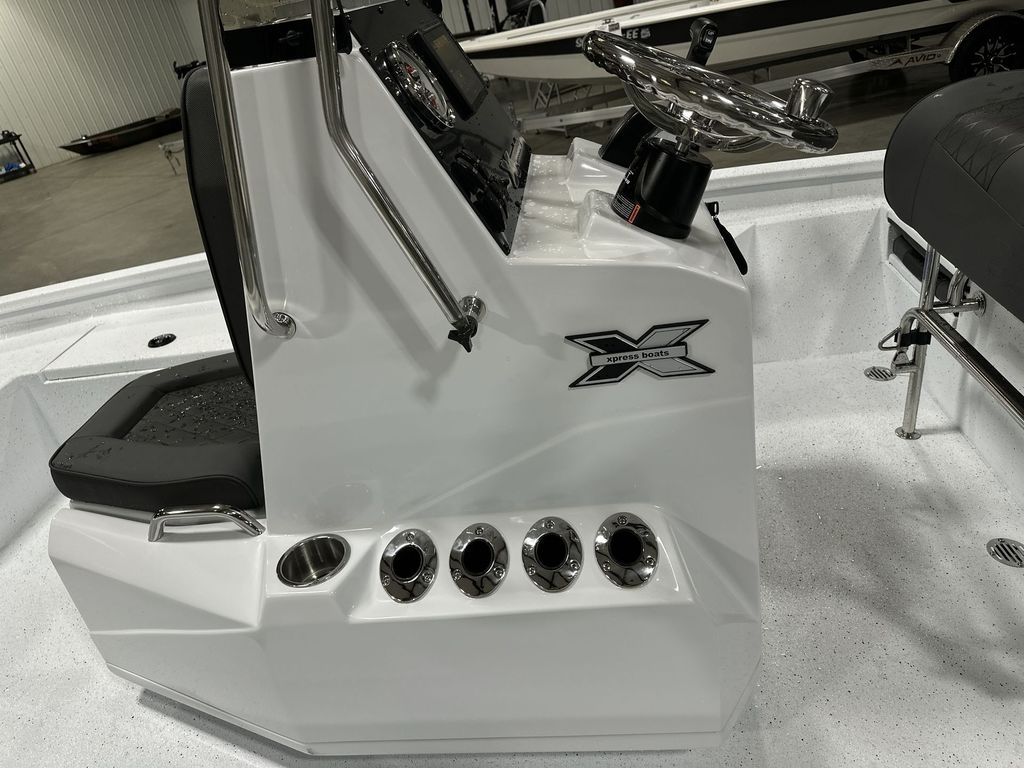 - Large Bay Center Console with Baitwell, Fold Down Grabrail,