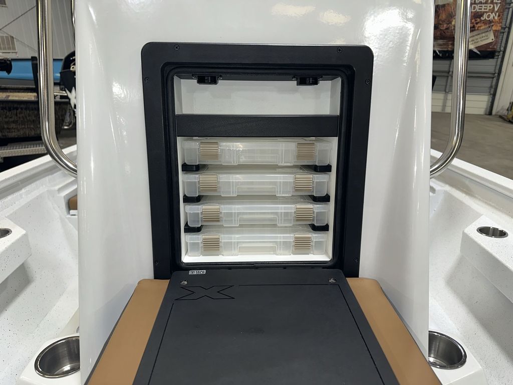- Large Bay Center Console with Baitwell, Fold Down Grabrail,