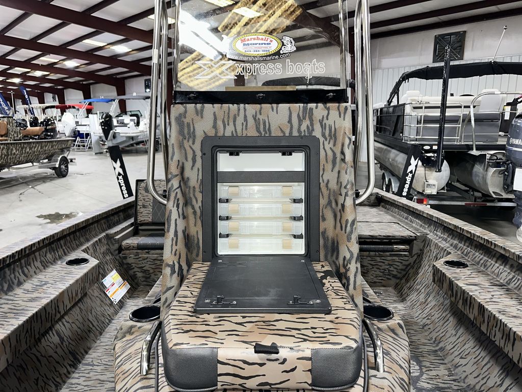 - Large Bay Center Console with Baitwell, Fold Down Grabrail,