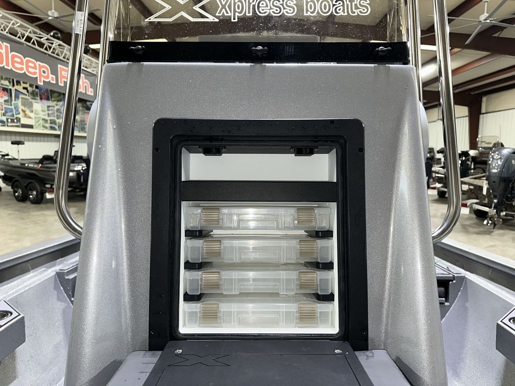 - Large Bay Center Console with Baitwell, Fold Down Grabrail,
