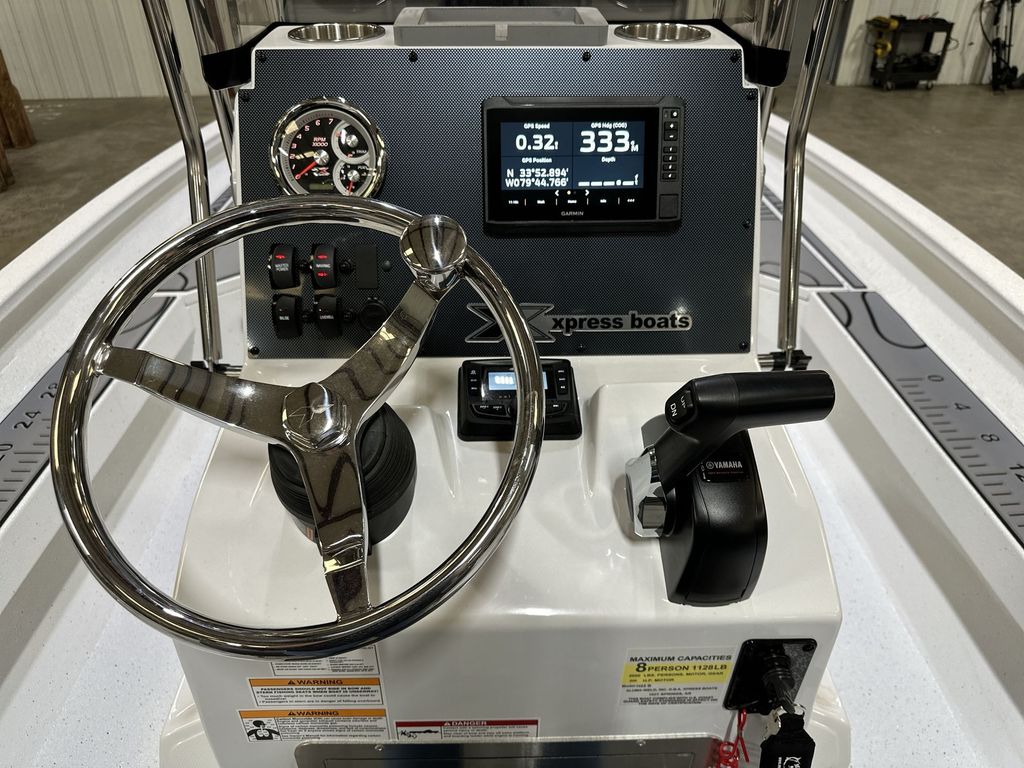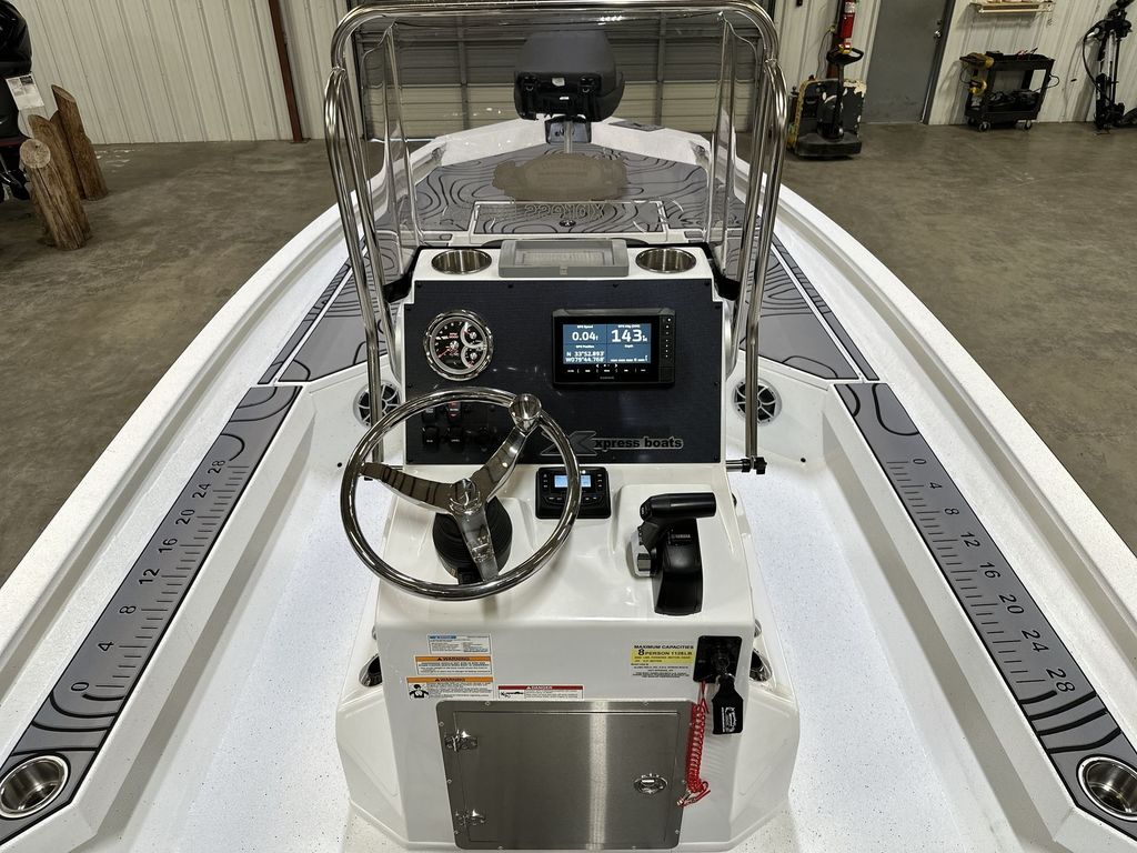 - Large Bay Center Console with Baitwell, Fold Down Grabrail,