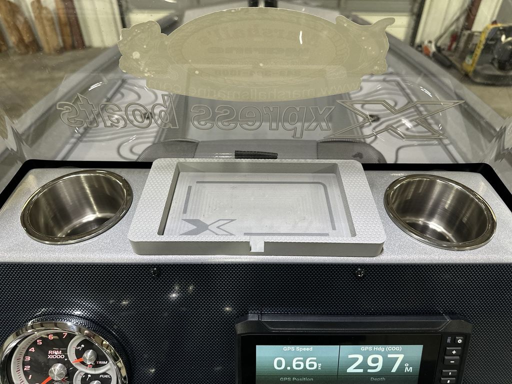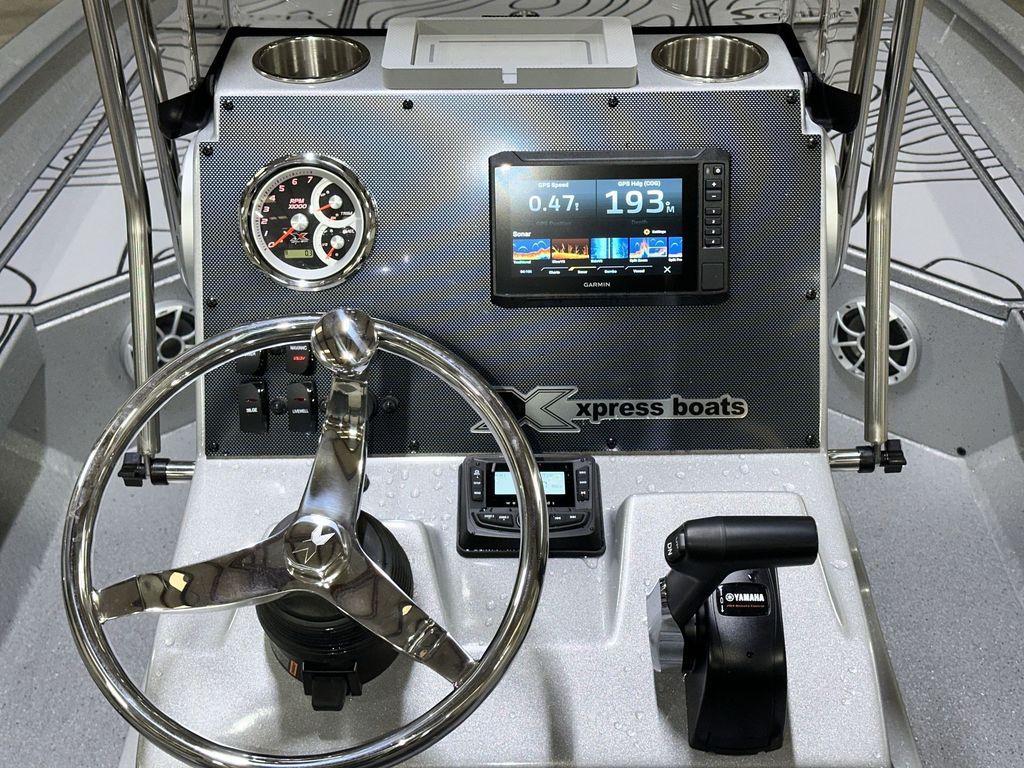 - Large Bay Center Console with Baitwell, Fold Down Grabrail,