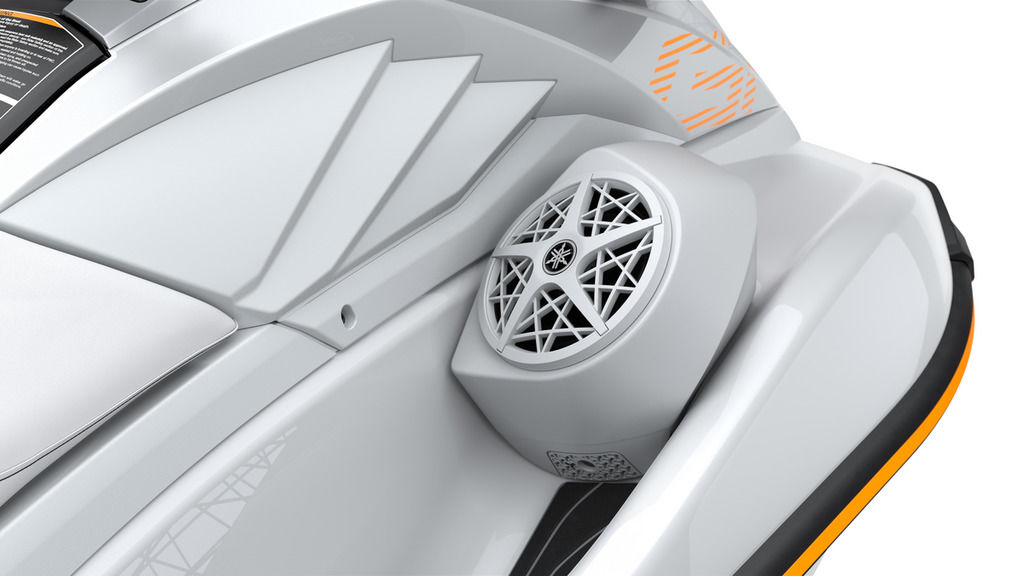 Experience the Yamaha audio speakers, now factory-installed for the WaveRunner® series. Engineered to withstand the rigorous conditions of marine environments, these premium speakers offer exceptional durability and deliver superior sound quality, even at high speeds and through splashing waves.