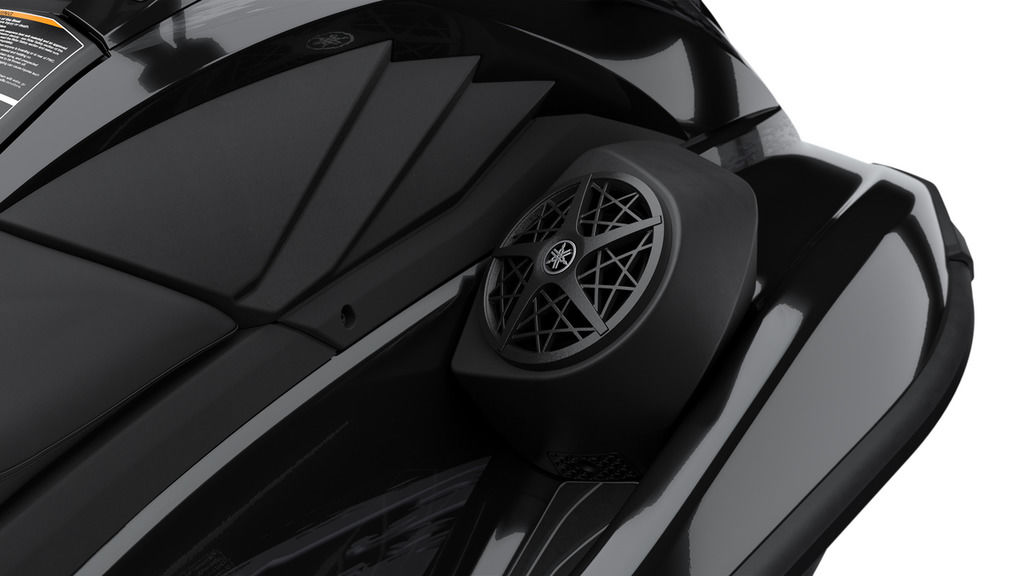 Experience the Yamaha audio speakers, now factory-installed for the WaveRunner® series. Engineered to withstand the rigorous conditions of marine environments, these premium speakers offer exceptional durability and deliver superior sound quality, even at high speeds and through splashing waves.