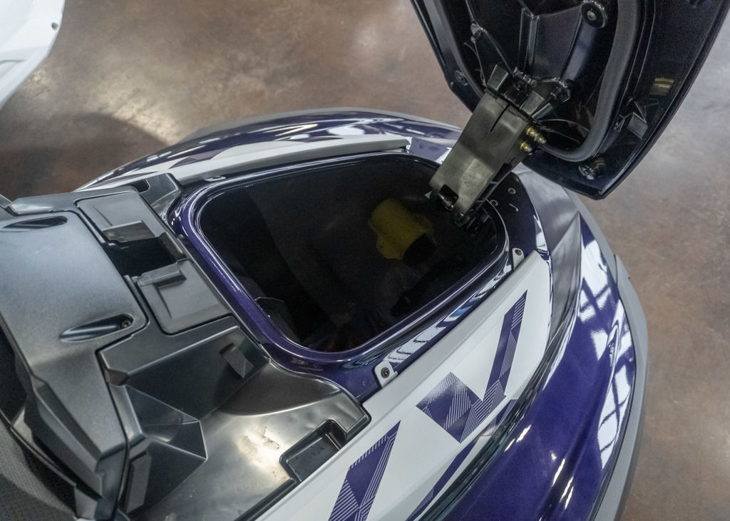 The spacious bow storage area is perfect for keeping towels, personal items, and other essentials secure and easily accessible.