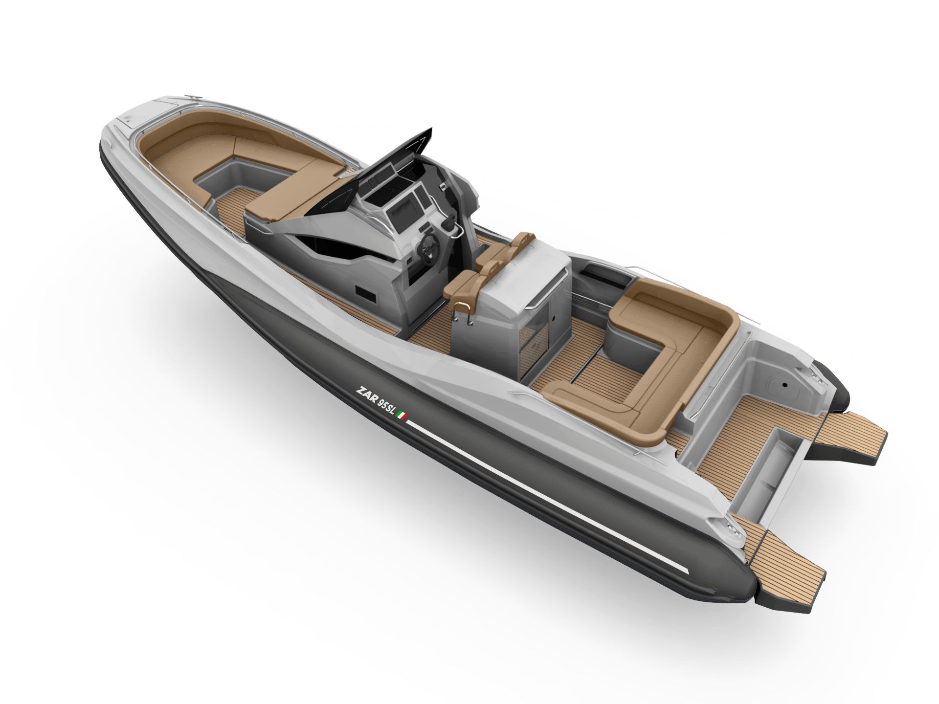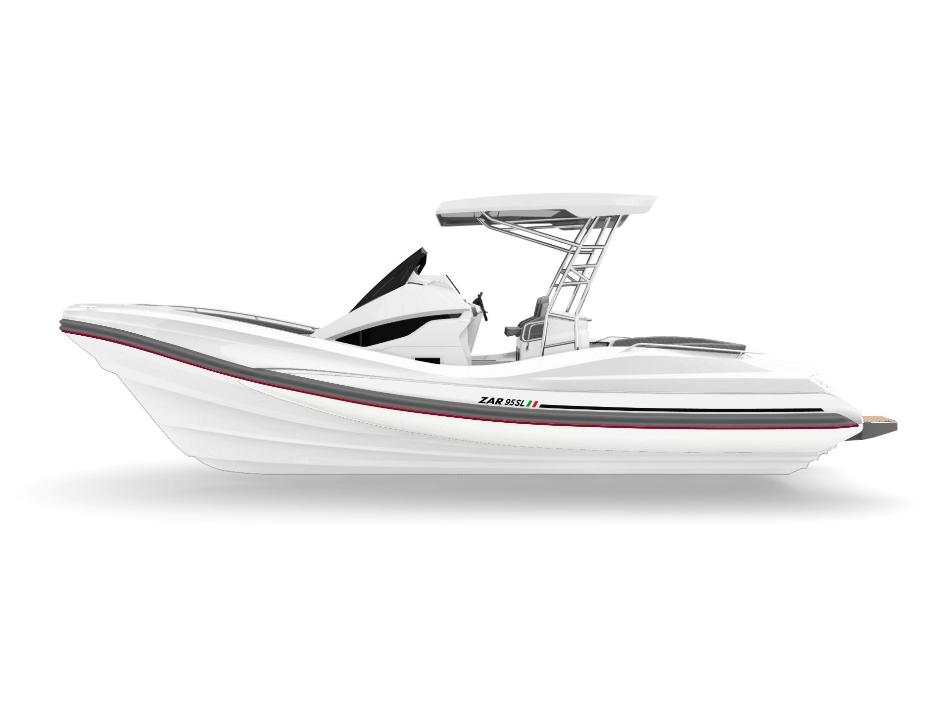 The ZAR 95 SL has many options ranging from color selections, T-top or retractable gas assisted bimini top, Air conditioned cabin, Custom towing bracket to be a towable yacht tender and more.