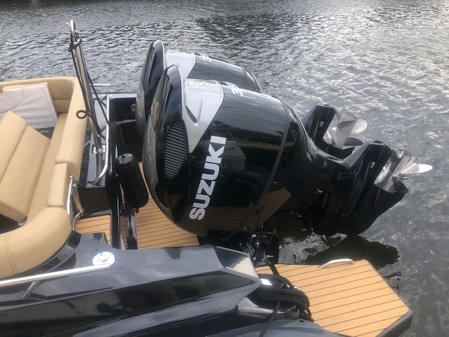 The ZAR 95 SL - Designed around the famous ZAR hull with the idea in mind of the perfect day boat for up to 16 people or the perfect weekender for a couple of 2 to sleep in the cabin. The boat features popular options such as 2 large refrigerator draws, gas grill, sink, large settee for dining aft, a full cabin with a separate head and shower, electric windlass, T-top with sunshade, sun lounging areas, and the best and driest ride you have come to know from ZAR. With a max of 700 hp, twin 350 hp is the typical setup with the option for joystick control.