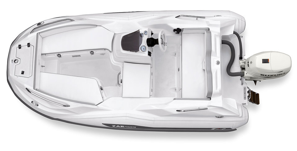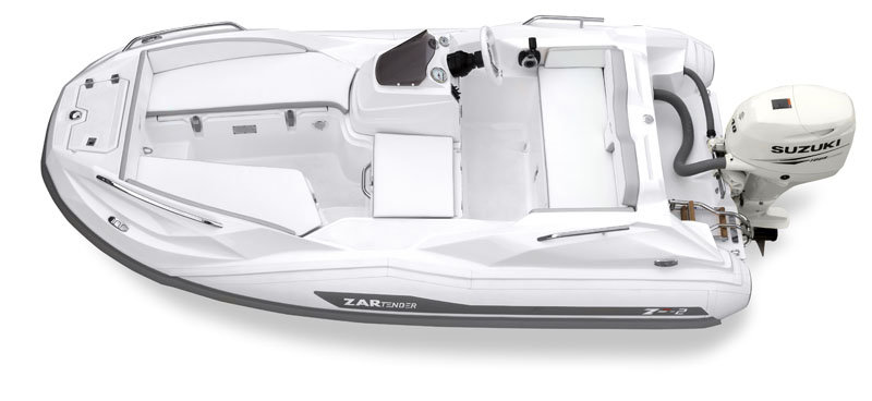 The ZAR ZF-2 is the perfect median between the ZF-1 and ZF-3. The ZAR ZF-2 is 12 feet long and has a layout with U-shaped seating in the bow. No other 12 foot tender seats 6 people in seats and performs with grace and agility in every situation. Rigged with a 60hp, the ZF-2 will easily plane out either pulling up a skiier or loaded to the max with passengers. Having double the storage of comparable boats, the ZF-2 has more than enough room for all of your gear. The ZAR ZF-2 Tender with it's ZAR hull is the best running, best performing, driest, most comfortable ride with more seating and double the storage of any competing boat of the same size.
