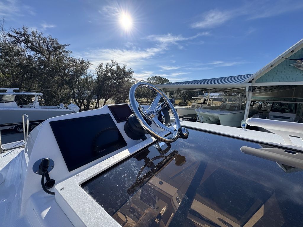 - Powered Upper Station w/ Garmin MFD, Mercury Vessel View, Garmin VHF, Throttle Controls, and Steering Wheel