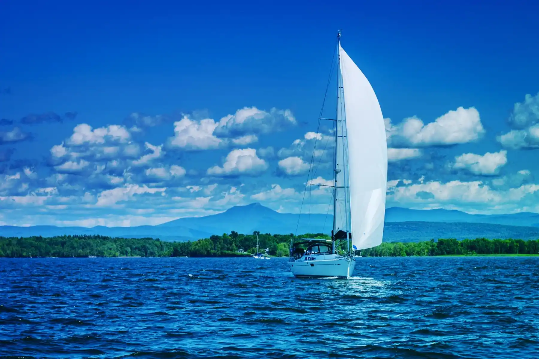 Bordered by the states of New York, Vermont and the Canadian province of Quebec, Lake Champlain is a natural freshwater lake, being 120 miles long and 12 miles wide at its widest point, Lake Champlain enjoys 435 square miles of surface water. It has an average depth of 64 feet but has a deep point of 400 feet between Charlotte VT and Essex NY.